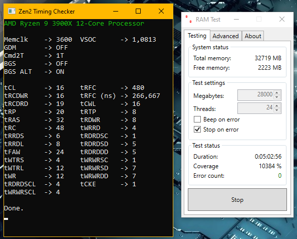 Wie gesagt. Aida Stresstest gerade nochmal 65 Minuten fehlerfrei, testmem5 läuft gerade 40 Minuten ohne Fehler, 3. Durchlauf. Wenn der dann sauber durchläuft, reicht es dann wieder einen Kaltstart zu machen und Karhu bis morgen (ohne am PC zu arbeiten).. bis 10.000% zu machen - oder muss ich damit erst wieder 20.000% machen, dann Kaltstart und sofort dach nochmal 10.000% ?
