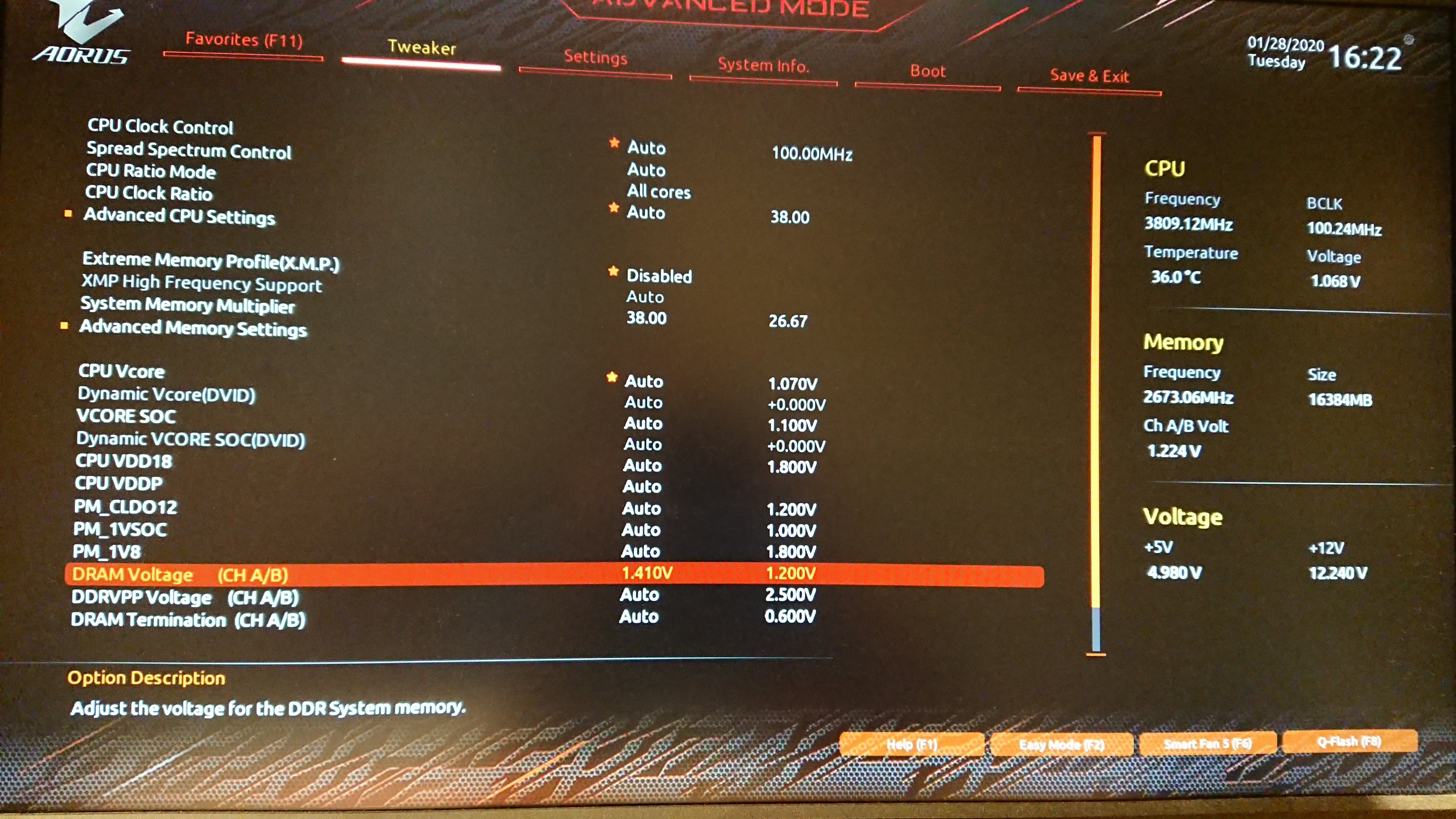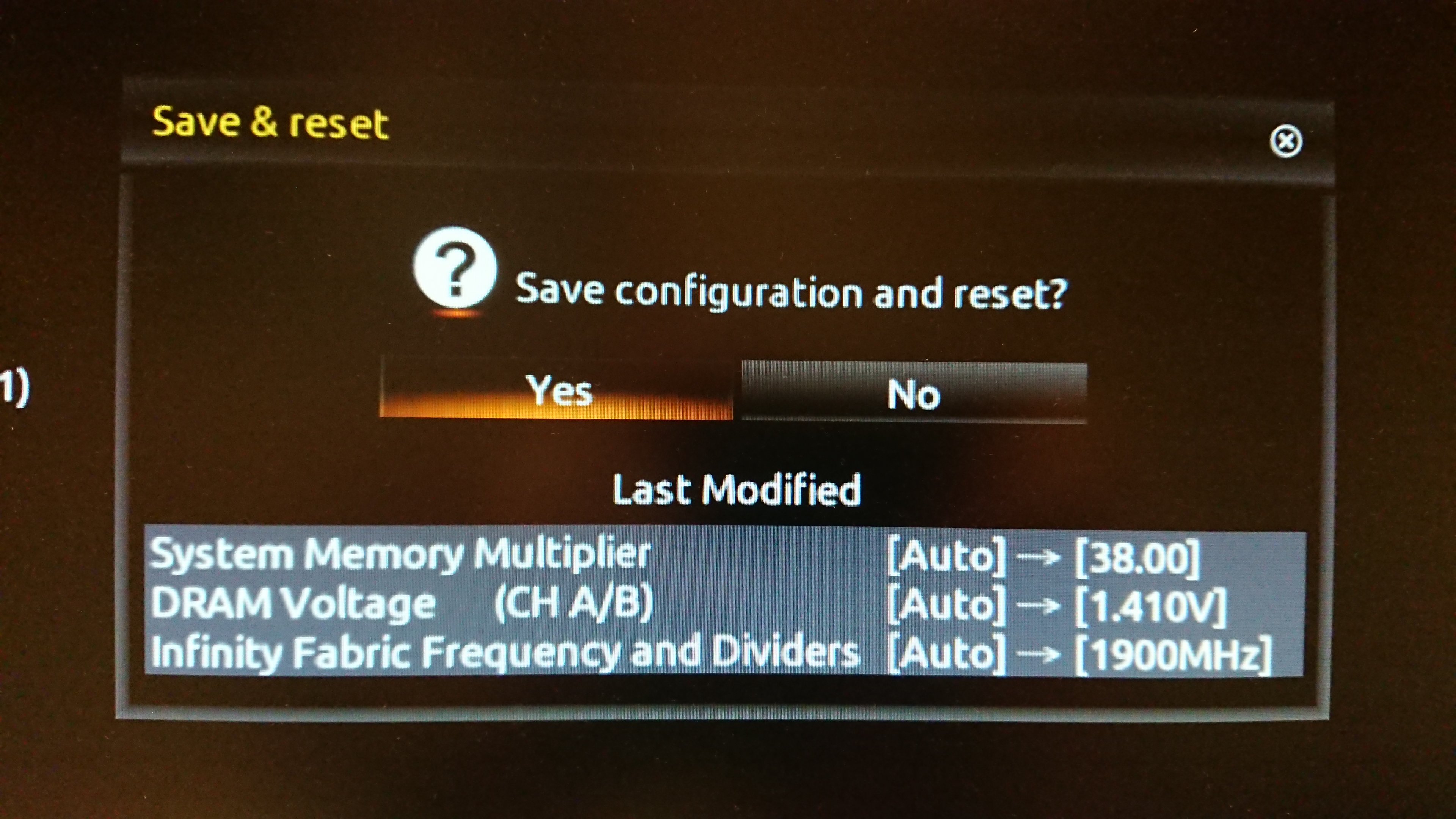 Wenn die 1900 MHz (IF) nicht wollen, kannst mal VSoC stur auf 1,15V setzen und VDDP auf 0,85V (VDDG mal auf 0,95V bis 1,05V testen) und langsam mit VDDP hoch gehen, vlt bekommst ja einen Boot. Wenn ja, dann ab zum Spannungen ausloten. Timings findest ebenfalls hier im Beitrag (siehe Anhaltspunkte Edies im Startbeitrag oder auch in der Anleitung von @ZeroCoolRiddler). Unbedingt mit dokumentieren, was du alles probiert hast.