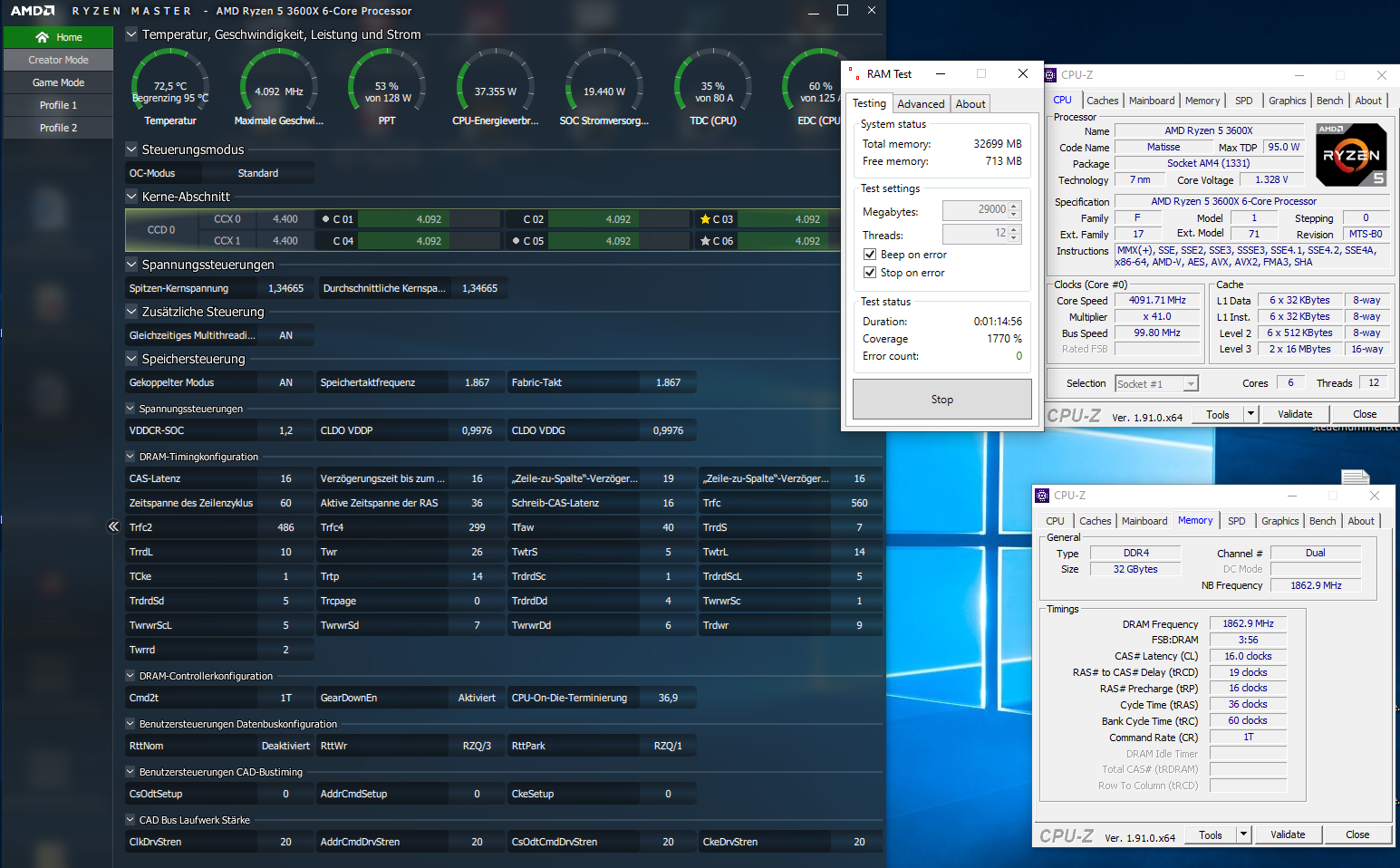 So, nachdem ich seit der damaligen Empfehlung hier das noch in der Sig. stehende System hatte, werkelt nun seit Gestern ein 3600X auf nem ASrock B450 Pro4 + 32GB von denen hier KLICK in meiner Kiste. Angespornt von diesem Test habe ich die Werte einfach mal übernommen, allerdings bootet die Kiste bei nem IF Takt von 1900MHz nicht. Stelle ich den RAM auf 3733 und den IF ebenso, läufts. Ich habe den Speicher aktuell auf 1,39V laufen. Muss mich erstmal in die Thematik einlesen und würde mich über entsprechende Tipps freuen wobei ich damit eigentlich schon recht zufrieden sein kann, oder?