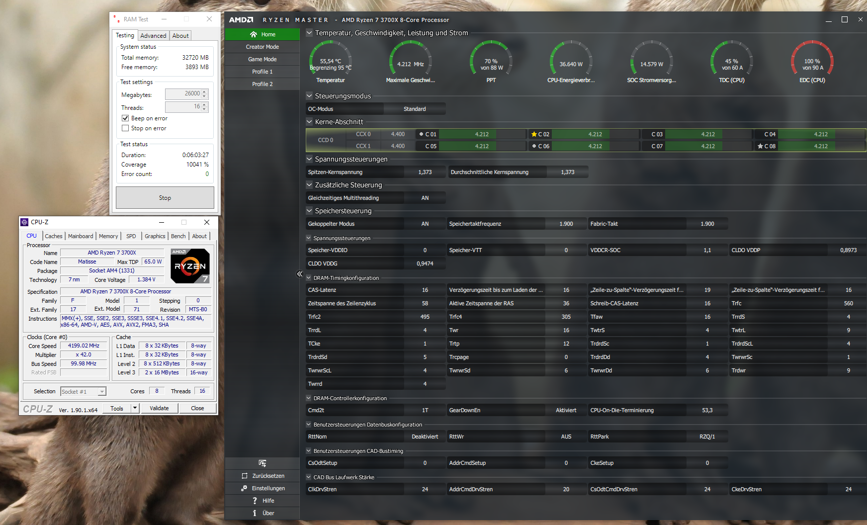 Wenn die 1900 MHz (IF) nicht wollen, kannst mal VSoC stur auf 1,15V setzen und VDDP auf 0,85V (VDDG mal auf 0,95V bis 1,05V testen) und langsam mit VDDP hoch gehen, vlt bekommst ja einen Boot. Wenn ja, dann ab zum Spannungen ausloten. Timings findest ebenfalls hier im Beitrag (siehe Anhaltspunkte Edies im Startbeitrag oder auch in der Anleitung von @ZeroCoolRiddler). Unbedingt mit dokumentieren, was du alles probiert hast.
