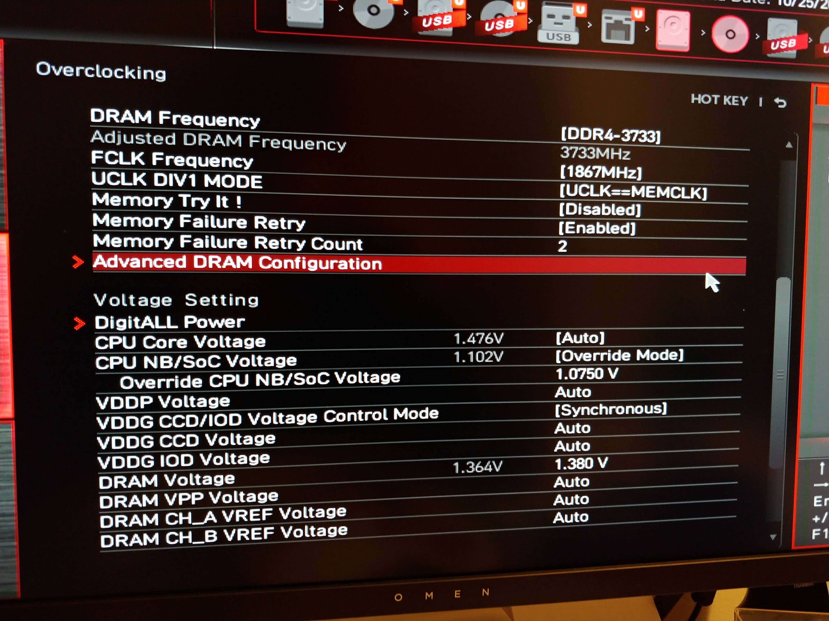 Hab am SOC und RAM Volt nichts eingestellt. Alles per XMP.