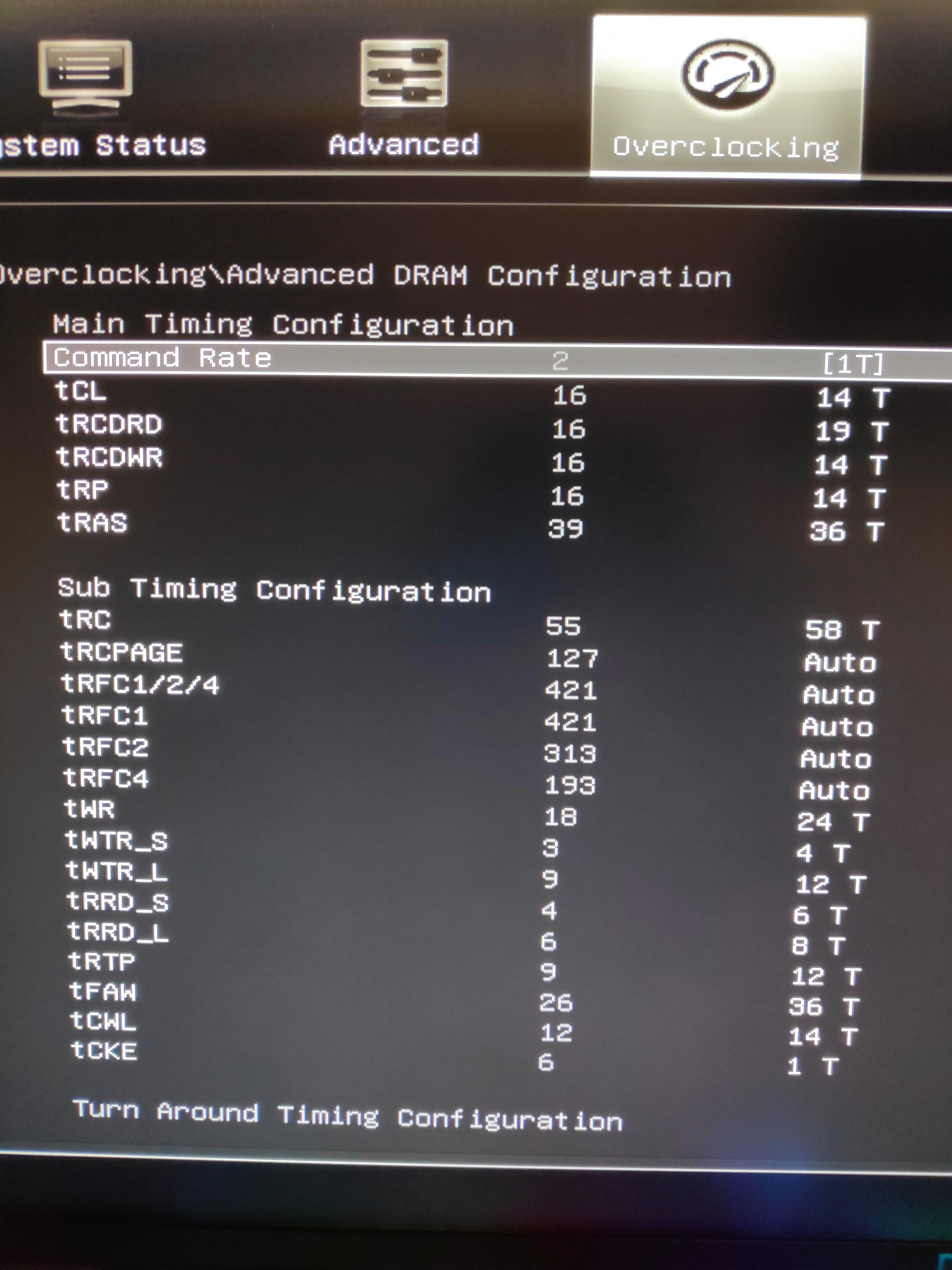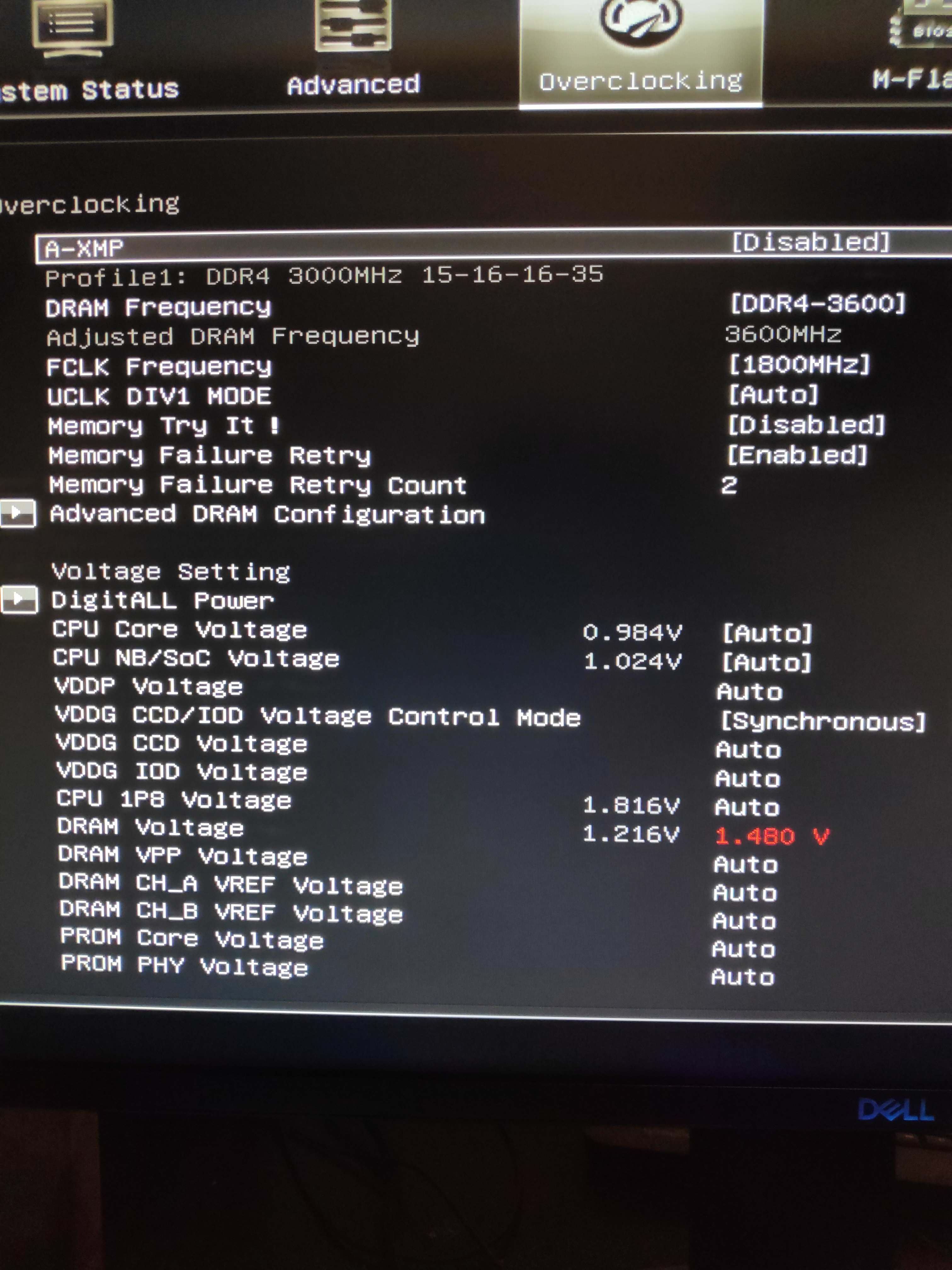 2. Verwende ich auch selbst ein Crucial Ballistix 3000 MHz CL15 Kit wie mein Bruder, welches auch das richtige XMP Profil besitzt, aber ich habe derweil Kaltstart Probleme. Wenn der PC mal ausgeschaltet ist und ich ihn starte, bootet er nicht, es kommt die Meldung dass das OC fehl schlug, wenn ich dann im Bios aber die selben Settings via F10 speicher und neustarte, startet der PC und die Settings sind stabil. Ich verwende die vorgaben von @ZeroCoolRiddler 3600 MHz CL14 sanfte Timings bekomme dies aber mit meinem neuen Board (MSI X470 Gaming M7) nicht mehr zum laufen. Ich habe mal die ProcODT auf bis zu 120 Ohm hochgestellt aber ohne Erfolg, könntet ihr mir Tipps geben, an welchen Stellschrauben ich noch drehen könnte um das Kaltstarten zu beheben?