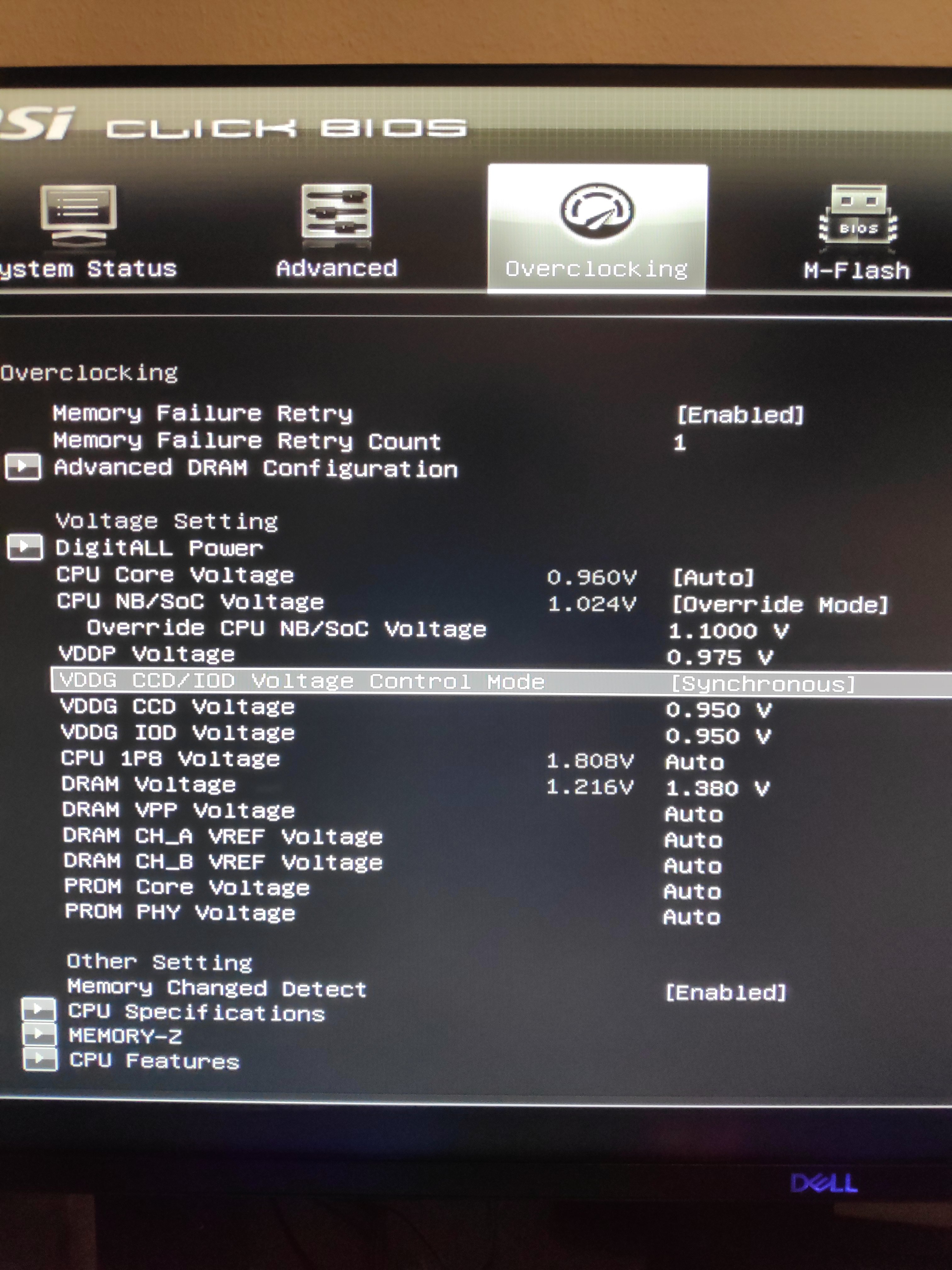 - VDDG habe ich einfach mal auf 1,05 gesetzt, gleichzeitig mit 1,1125 vSoC, damit Karhu/TM5 stabil laufen. Mit dem Wert habe ich nicht weiter gespielt!