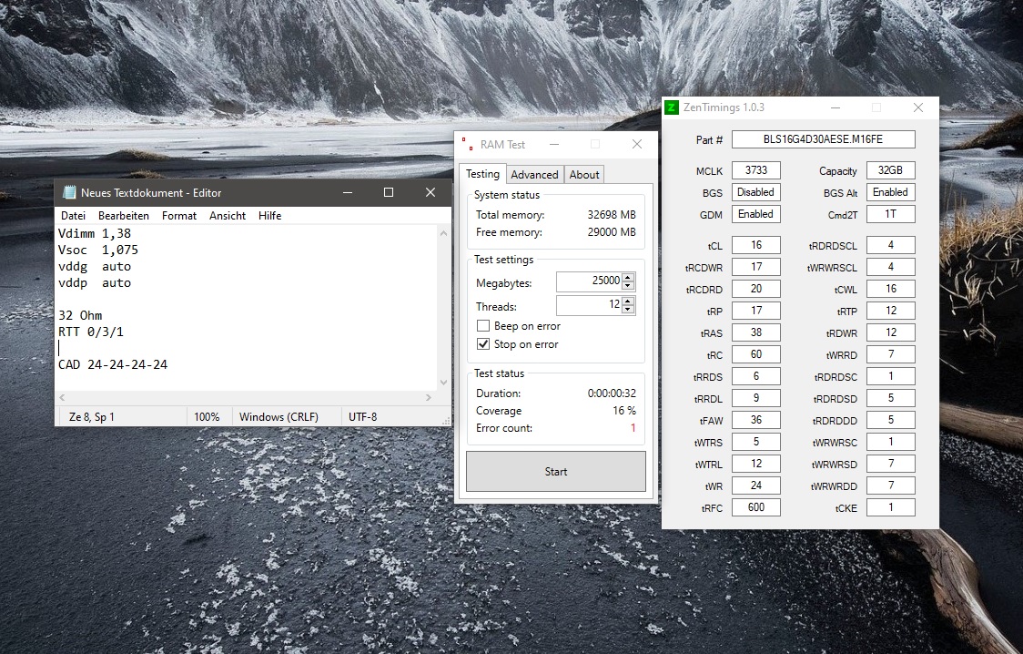 ich hatte meine stabilen Einstellungen für meine 4x 16GB E-Dies dank
