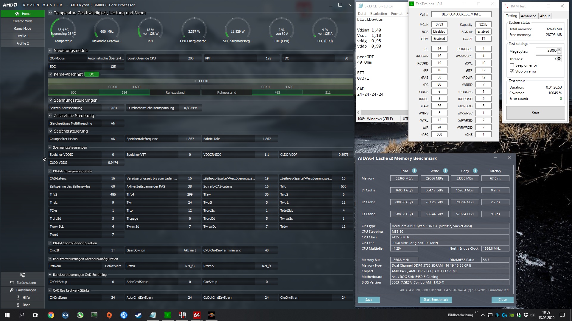 Ist zwar nicht an mich gerichtet, aber eine höhere VSoC probiere ich zuhause auch nochmal. Laut Aida geht meiner mit 3600CL14 auch bis deutlich unter 1,0 V. Auf die Latenz habe ich dabei bisher aber geachtet. Das muss ich mal checken. Vielleicht liegt da bei mir der Hund begraben, sofern ich mir das nicht alles einbilde.