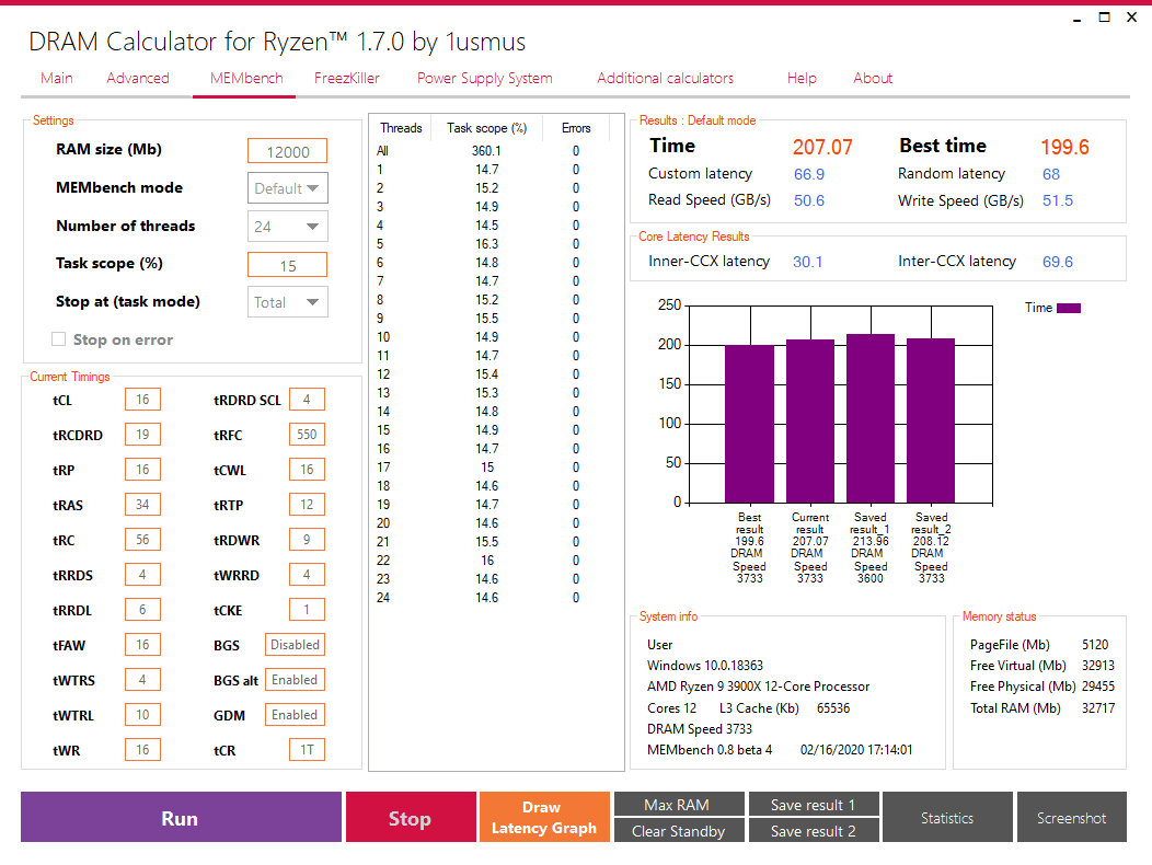 Die Nacht über hab ich dann noch MEMbench vom DRAM Calculator durchlaufen lassen und auch dort ist kein einziger Fehler aufgetreten.
