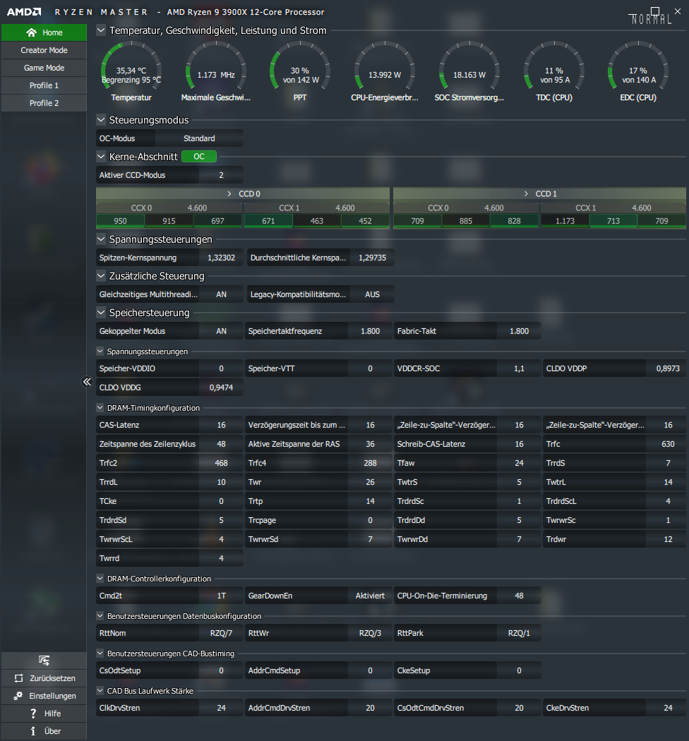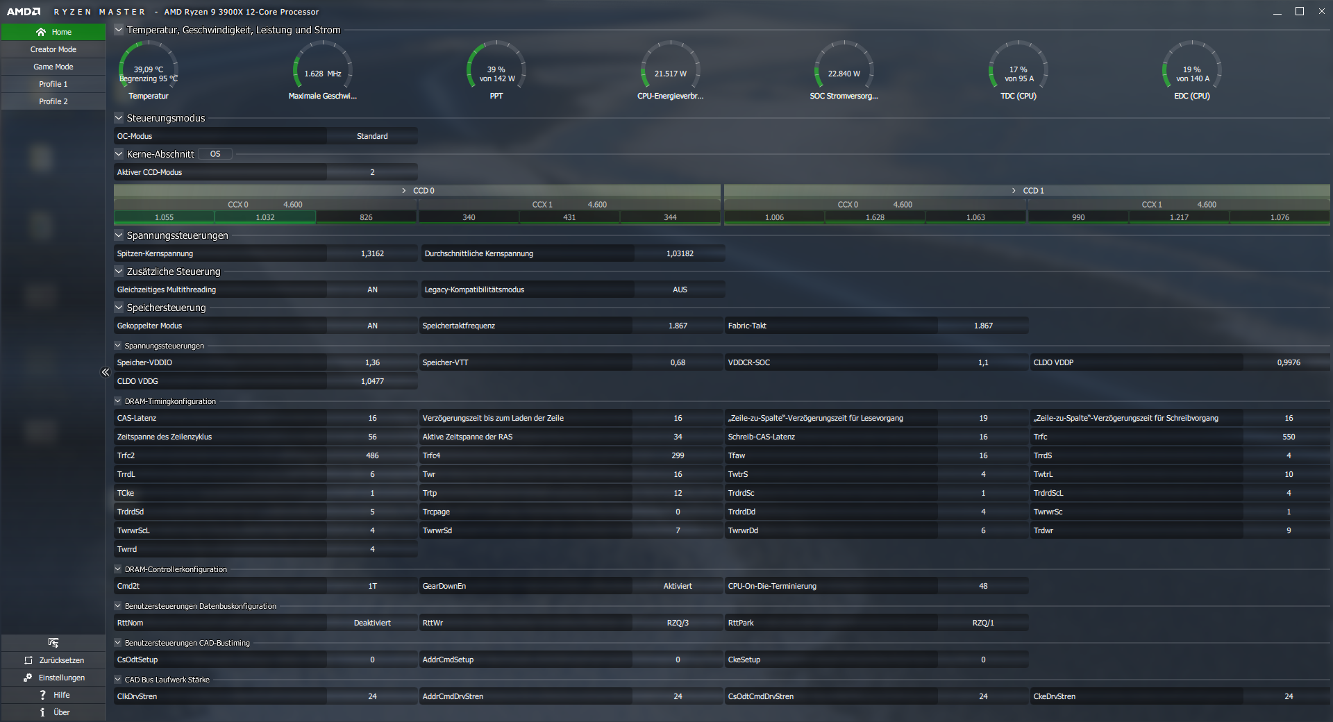 procODT, RTT, CAD läuft alles noch auf Auto. Der Ryzen-Master-Screenshots sollte die Werte zeigen.