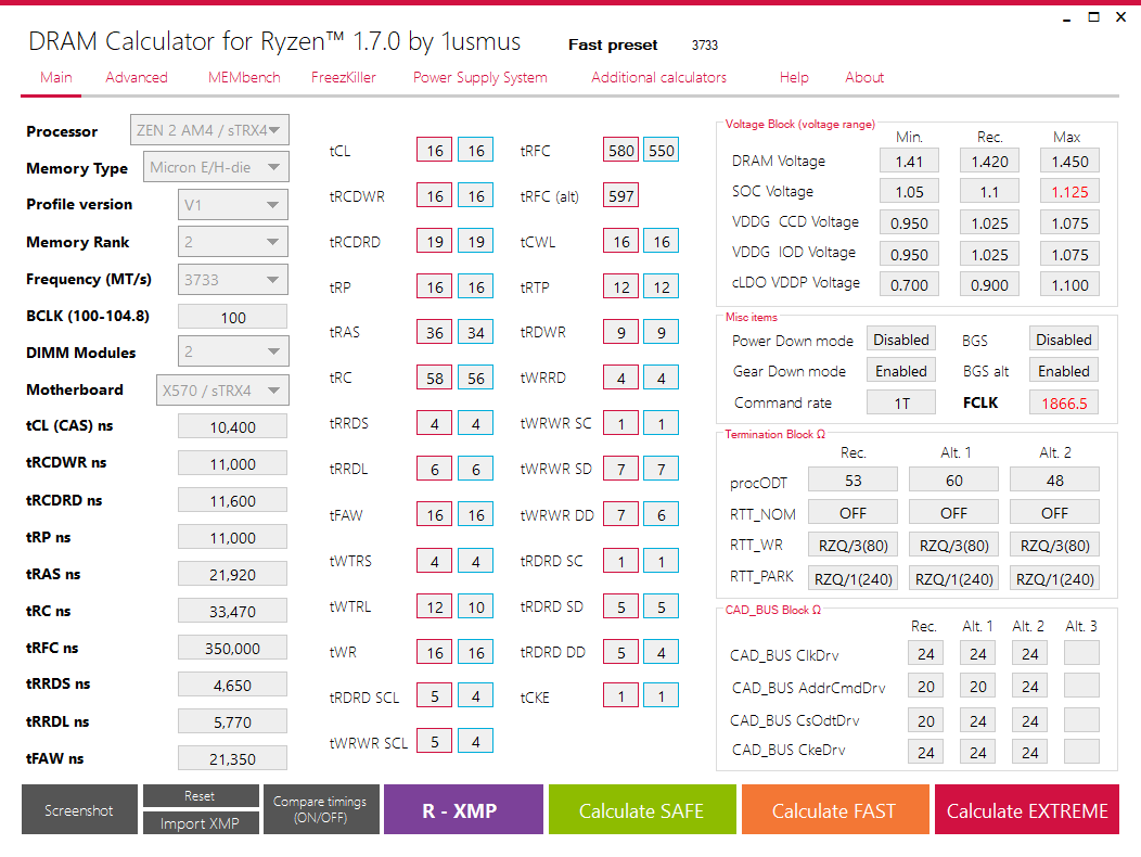 VSoc 1,125, VDDG 980, VDDP 920, VDIMM 1,461 (@3733) bei scharfen Timings am laufen- BGS/BGS alt lässt sich am Asus Prime nicht "einstellen".