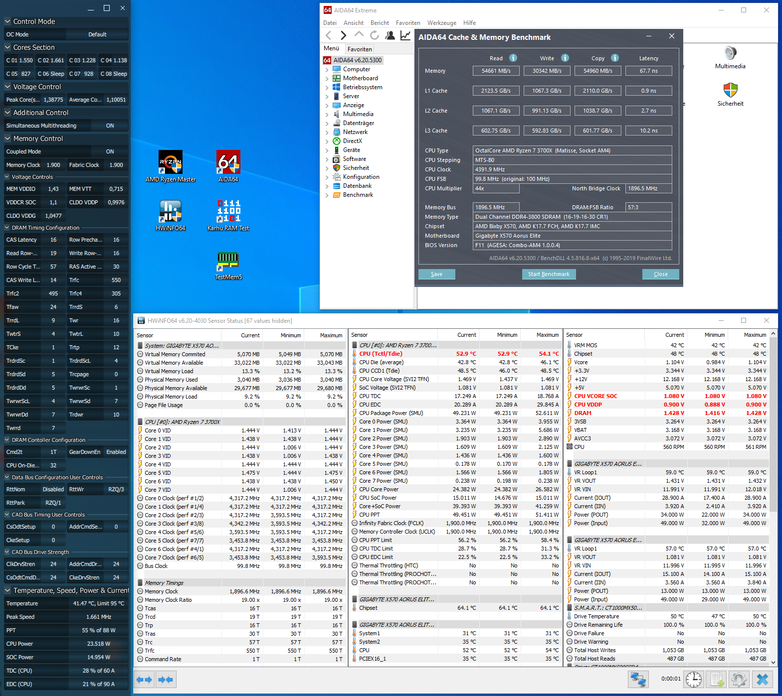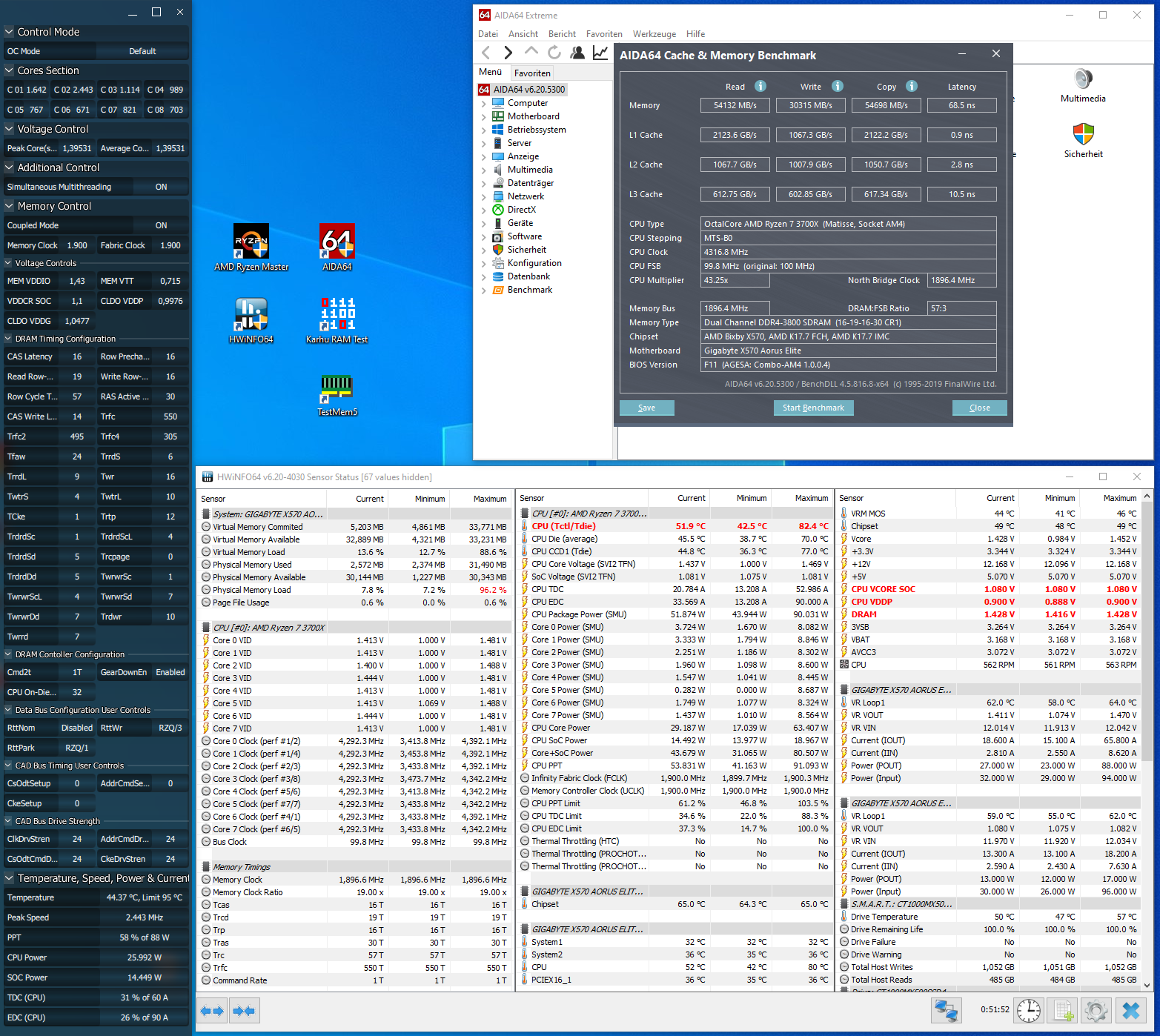 Bei mir waren es bis zu zwei ns, die bei mir schlechter waren. So komme ich bei 66,2 ns, bei festen 4,2Ghz komme ich auf 65,5 ns und bei 4,3Ghz auf 64,7 ns. Die lass ich aber nur zum Benchen laufen.DenMCX schrieb:Ich konnte bei mir reproduzierbar jedesmal die Latenz um 0,5-0,7ns VERSCHLECHTERN, wenn alleine die beiden letztgenannten Programme offen waren.