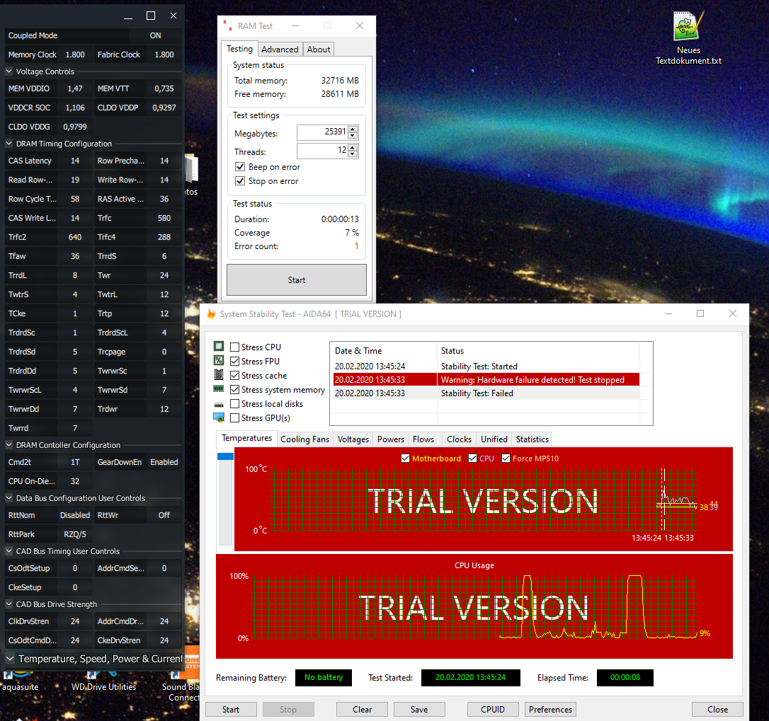 Was ich bisher gelesen habe, deuten schnelle Fehler in AIDA und Karhu auf zu wenig Spannung hin, aber da ich die Frequenz, Spannung, Widerstände und Haupt-Timings nicht geändert habe, würde mich das wundern. Vielleicht hat da ja jemand von euch eine Idee.
