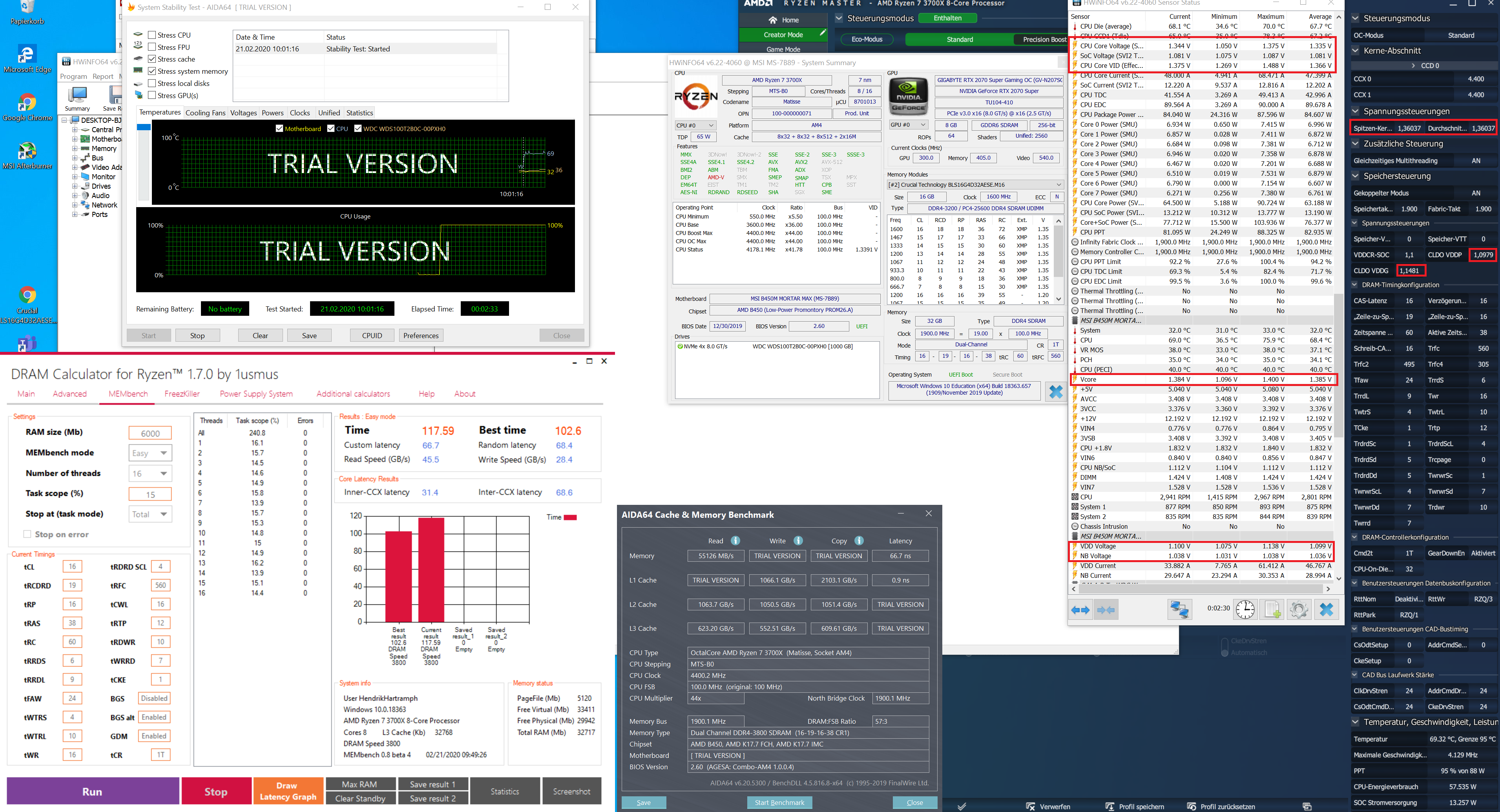 Nachdem die 3600er Timings problemlos liefen, bin ich nun bei den "