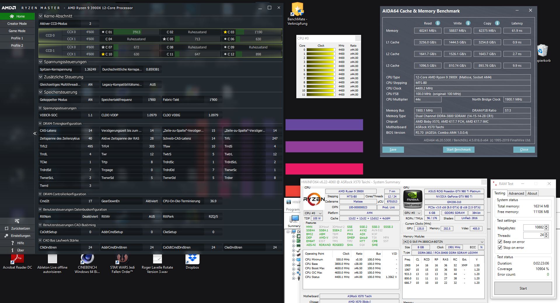Kannst deine CPU ggfs auch mal auf 4,3 GHz limitieren mit fixem Takt. Glaube nicht, dass die zwei Chiplets das verschlechtern (eher im Gegenteil). GDM off? Mal alle timings mit meinen verglichen? XMP wird ja nicht offiziell unterstützt, AMD (Boards) hat da eine eigene Implementierung die teilweise nicht identische Werte einträgt je nach Board.