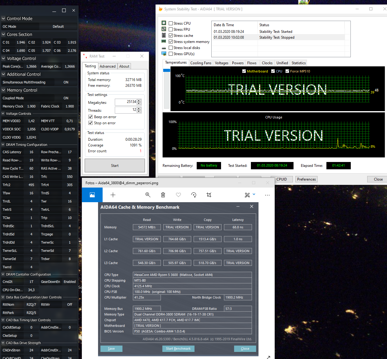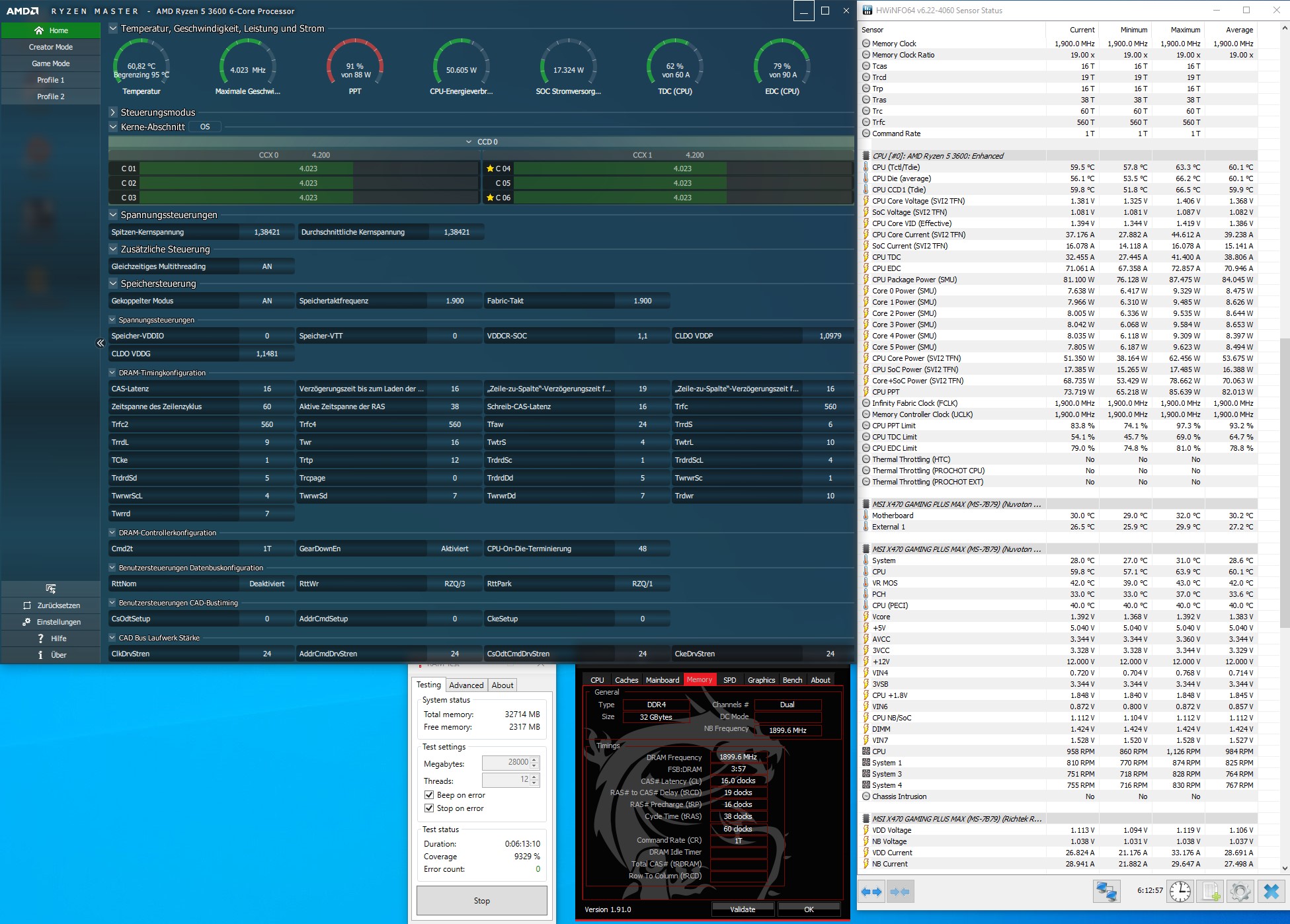 Hab dann den FCLK auf 1900 gesetzt und den RAM auf 3800 mit den scharfen Timings von ZeroCoolRiddler.