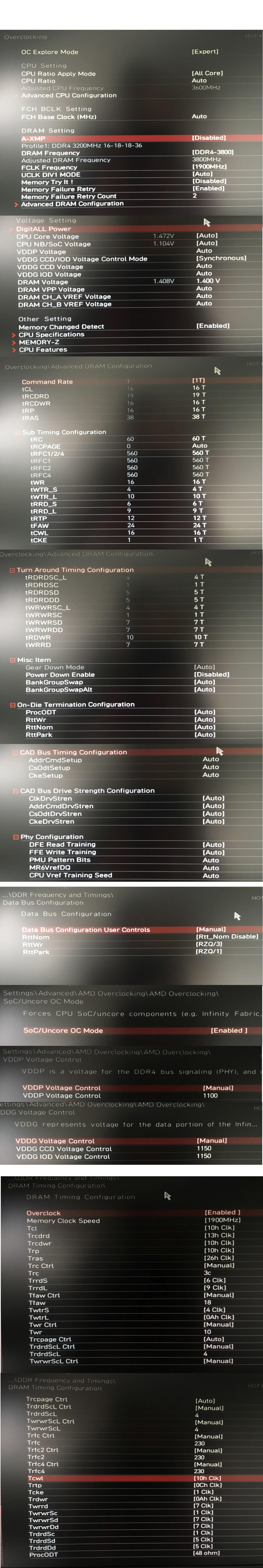Ich hatte anfangs ziemlich Probleme den RAM über 3600 MHz zu betreiben. Mit den Werten aus dem DRAM Colculator kam ich gar nicht weiter. Alles über 3600 MHz bootete nicht mehr. Ich bin aber auch Anfänger ;-)