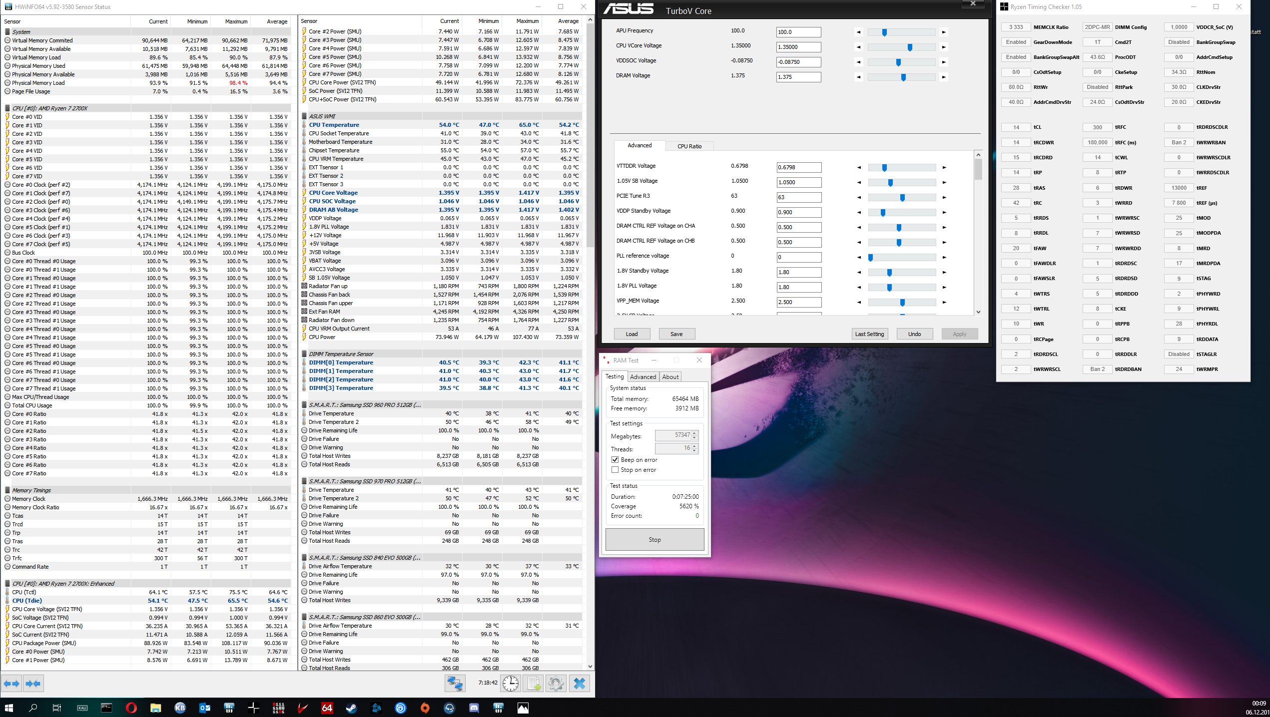 - 4h Aida (CPU, FPU, Cache, Memory)