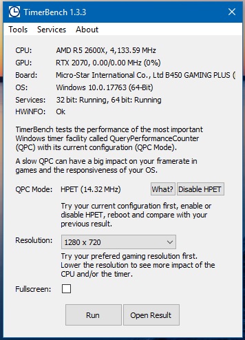 BlackDevCon schrieb:Bezüglich HPET bin ich auf das kleine Programm TimerBench gestoßen.