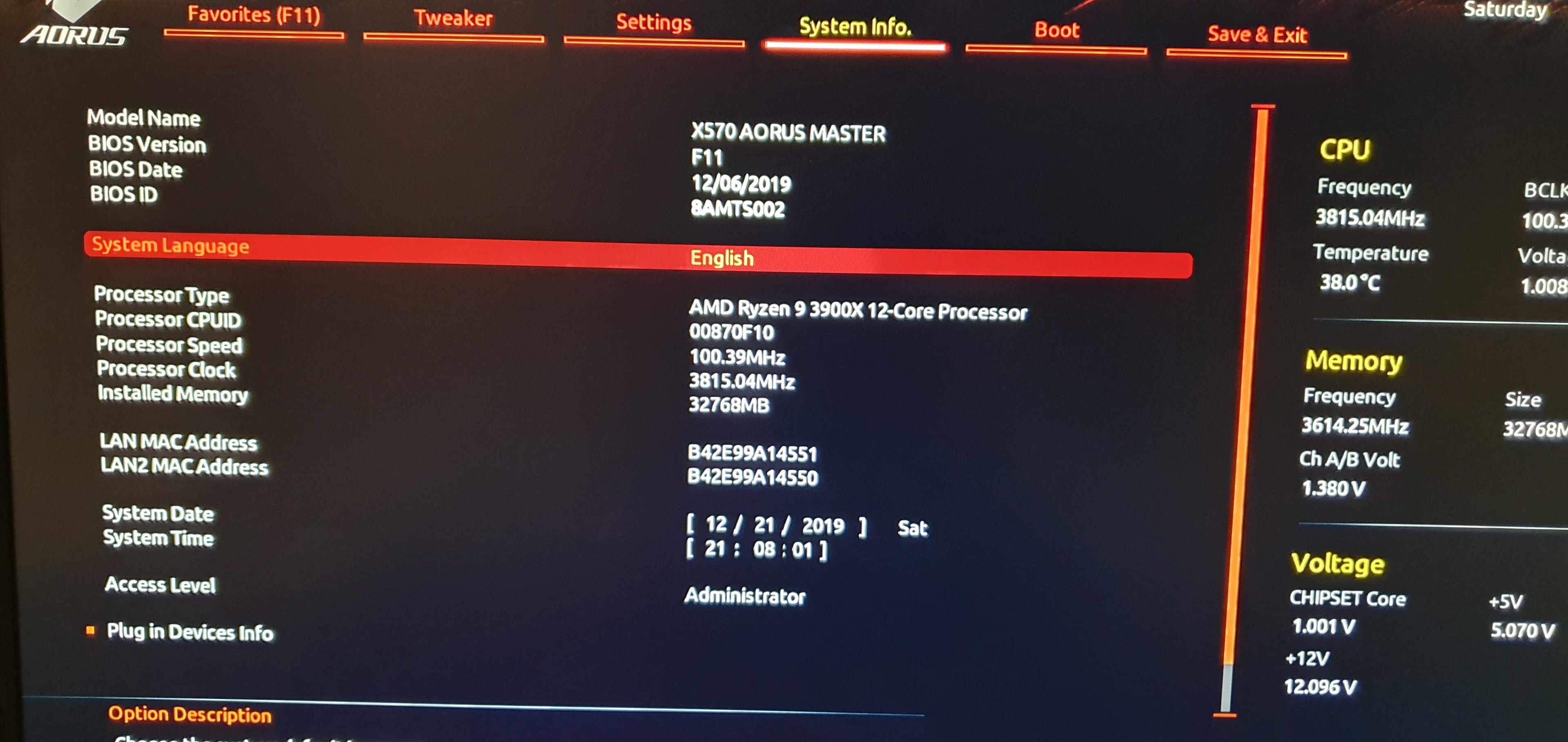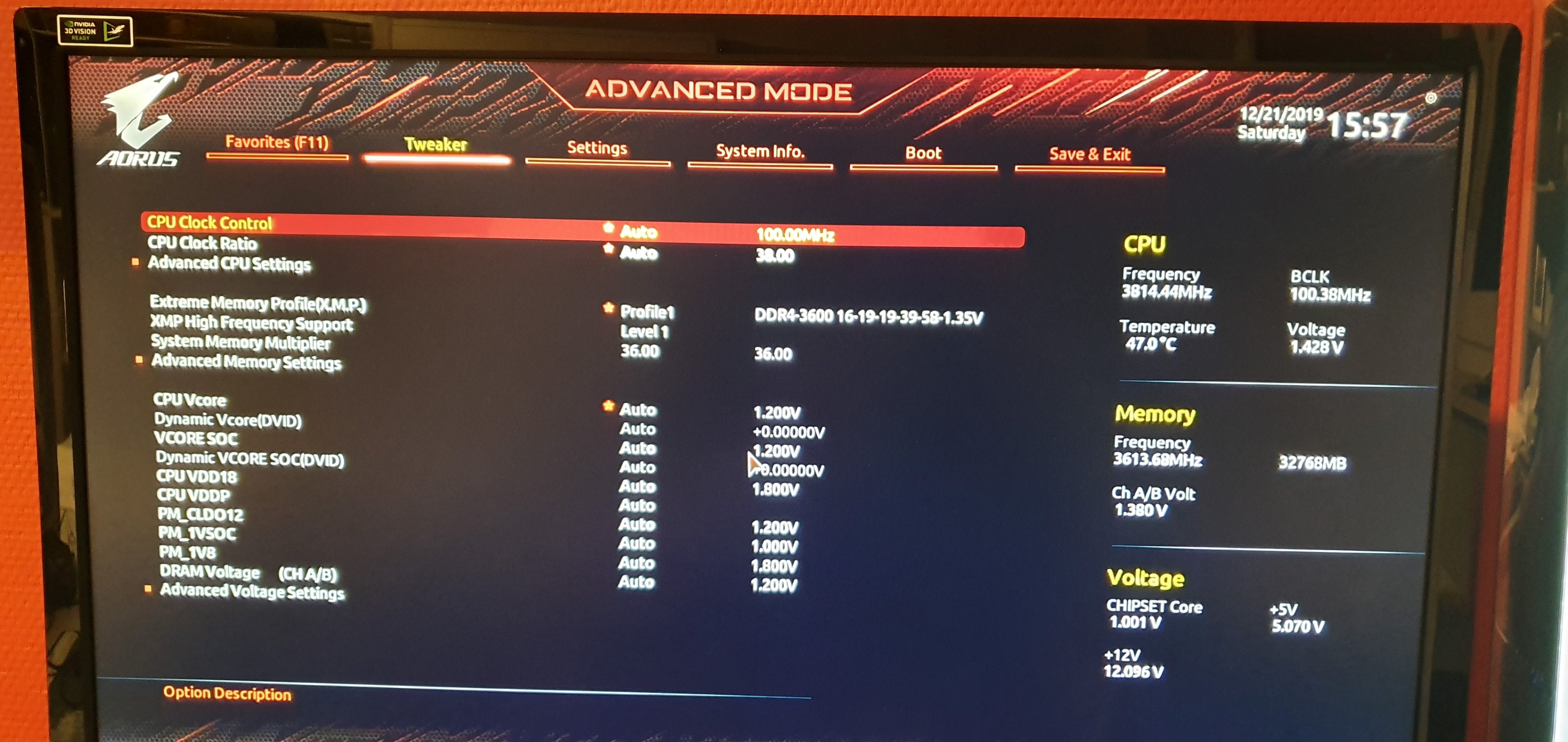 Deutlich zu sehen das du noch irgendeine uralt Biosversion nutzt, soviel zum Thema "Aktuelles Bios". Unbedingt auf F11 updaten sonst macht alles andere kaum Sinn. Zu sehen ist auch das du das XMP-Profil benutzt. Weg damit!