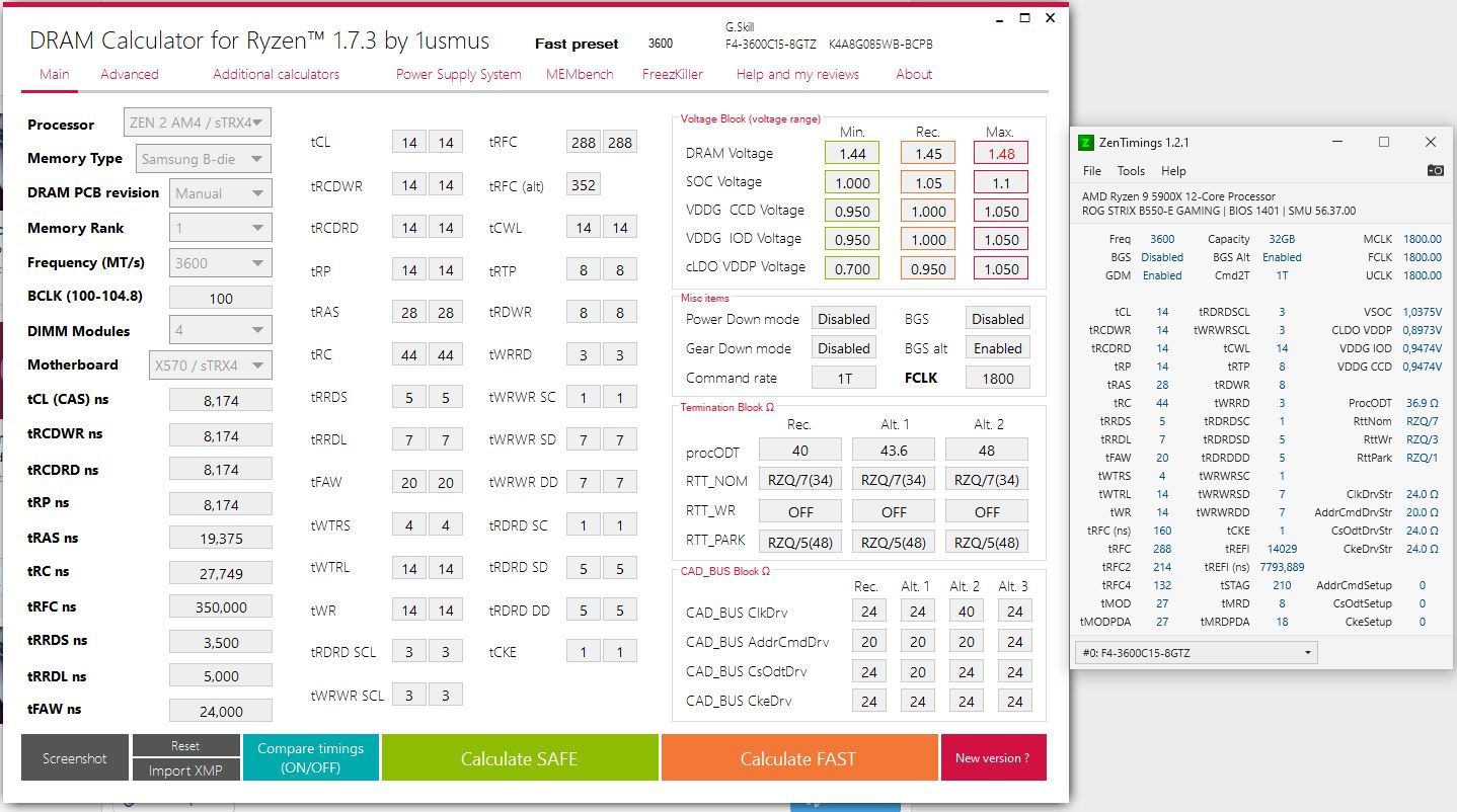 Mit GDM, Gear down Mode disabled kann man noch über 1ns verbessern. Ist dann nur schwerer den RAM stabil zu kriegen.