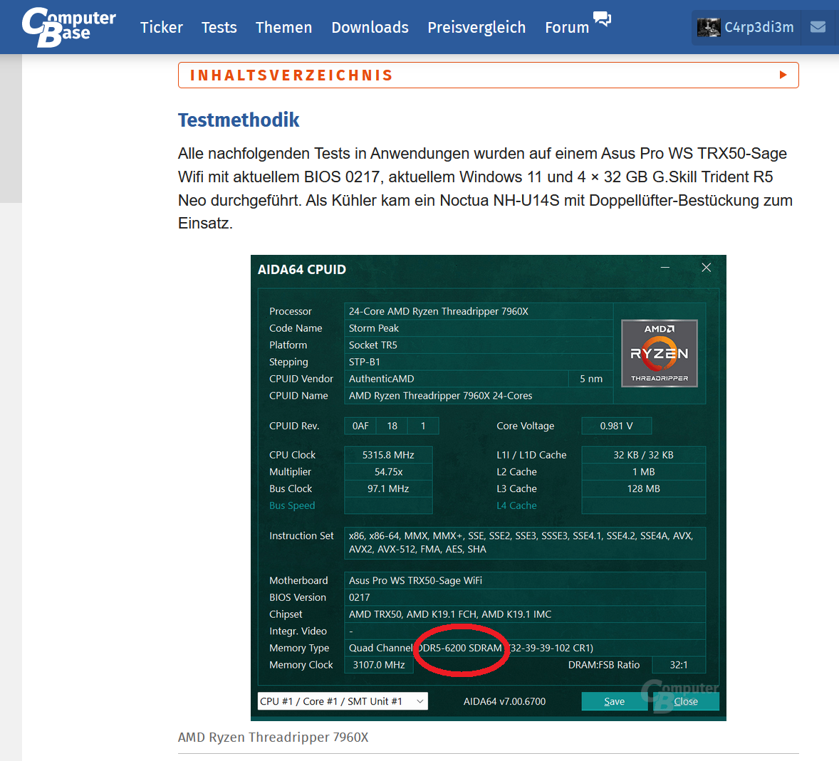 Im Aida+Text steht doch 6200MHz DDR5, in allen Benchcharts aber 6400, warum?Ryzen Threadripper 7960X