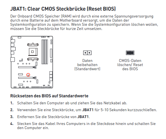 Bios reset sagt mir garnichts. Keine Ahnung wie das geht.