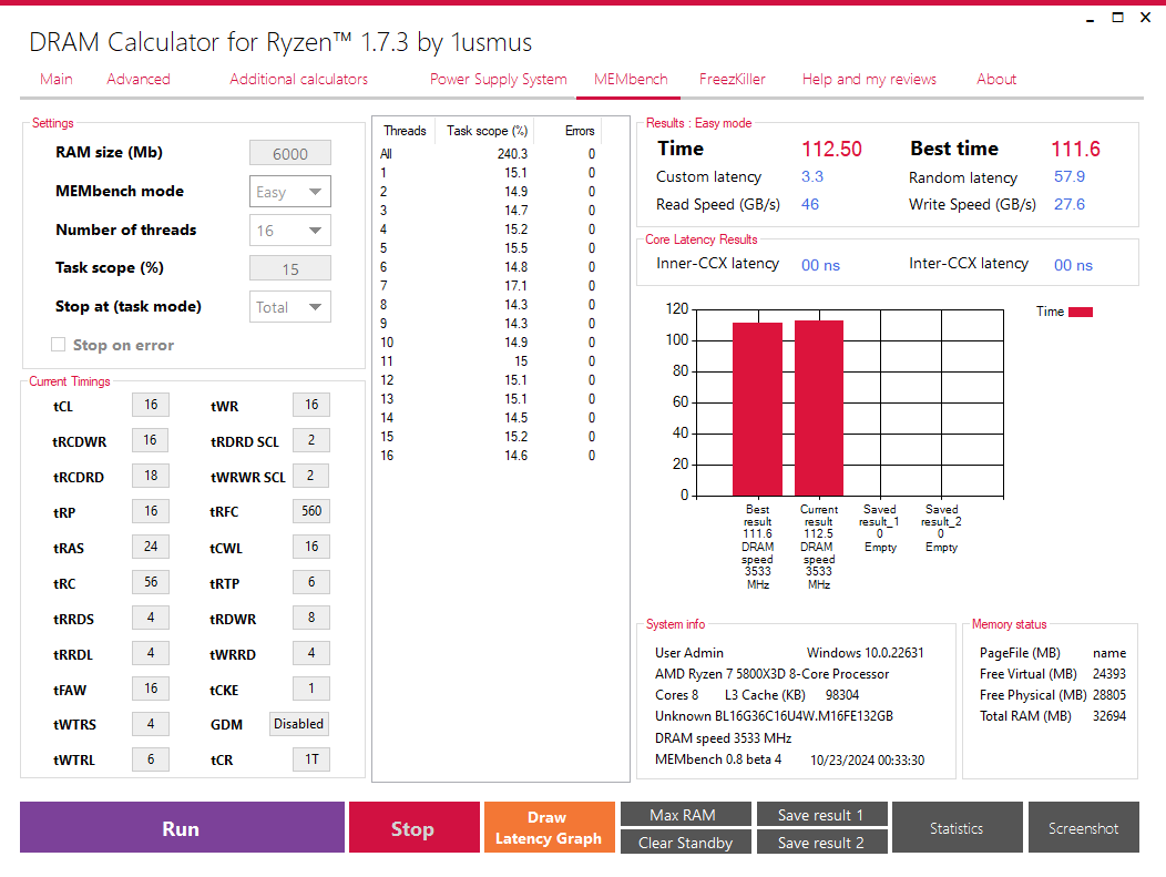 Ryzen DRAM Calculator nehme ich immer noch gerne zum benchen, die Kalkulation ist meiner Erfahrung nach aber oft Quark und mit den Riegeln geht teilweise viel mehr oder viel weniger. Also am besten kennt man sich selbst aus und verlässt sich nicht auf sowas. Meine Riegelchen sind jedenfalls insane schnell für E-Die´s. tRFC und tRC sowie tRCDRD sind (typisch E-Die) egal mit welchen Mittlen leider nicht niedriger zu kriegen, aber der Rest ist fein. Läuft auch mit nur 1,3 Volt. Und ja, das sind stabile Einstellungen. Ich hab bei gleichem Takt mit B-Die´s von einem Auftraggeber die dort angegebene Bestzeit geschlagen. Aber die Geschwindigkeit ist bereits so hoch, dass es nichts mehr bringt noch schnelleren RAM einzubauen.