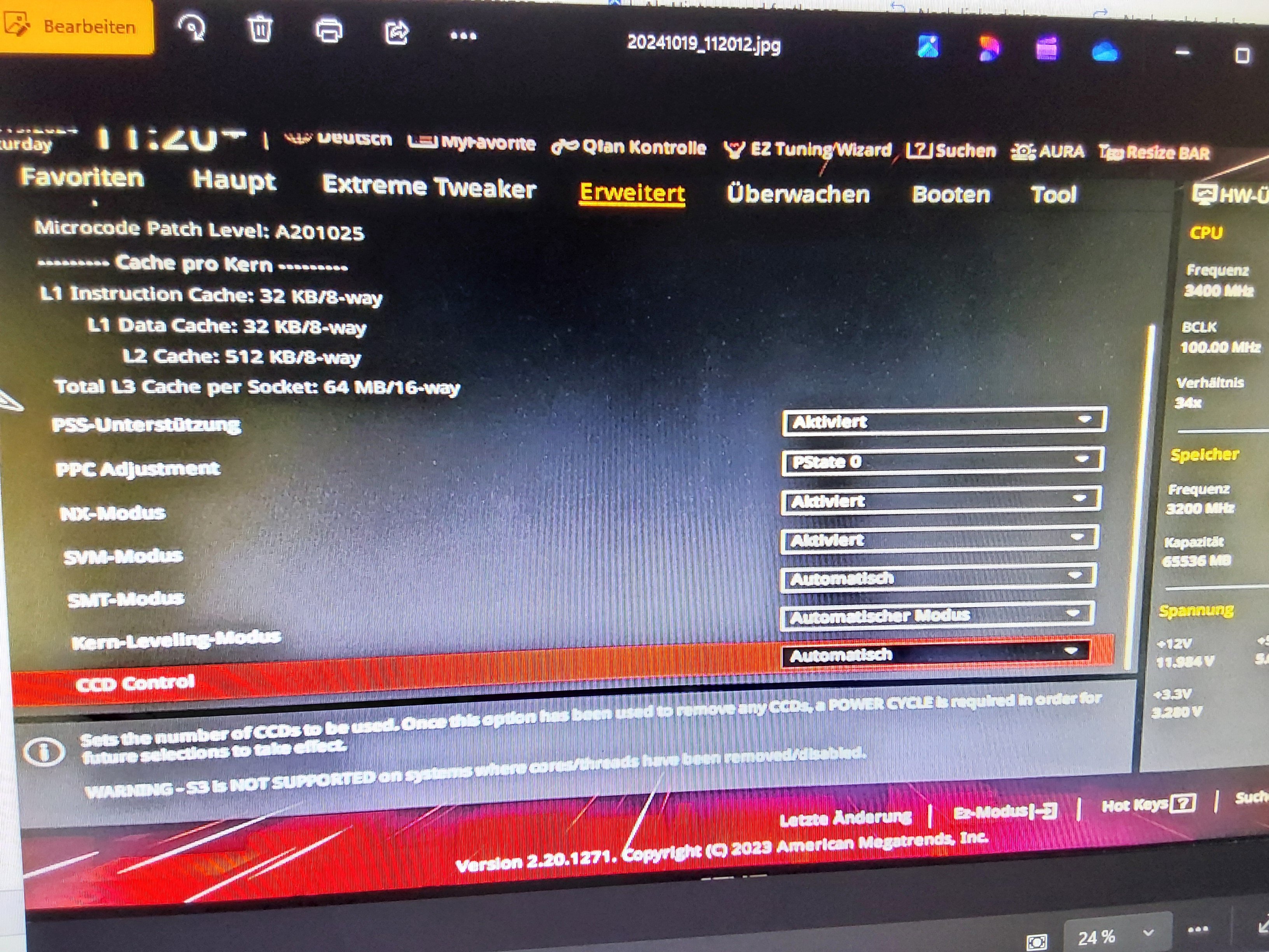 In der Regel habe ich meine PCs immer mit Auto zum Laufen bekommen. Ob es mein 3700X oder der 5700X3D war. Selbst die Speicher Settings waren immer auf Auto. Daher war ich mir 100% Sicher, dass die CPU einen weg hat.