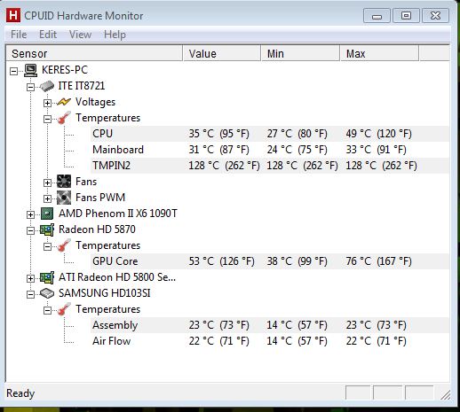 Wenn ich den Rechner hochfahre und auch gleichzeitig das Programm startet, dann sind diese Temps durchaus normal. Woher sollten auch sonst so kühle Temps kommen, wenn nicht unmittelbar nach Systemstart, wo auch die Messung erfolgt?! Deswegen das "min". Da ist das System halt noch kalt.