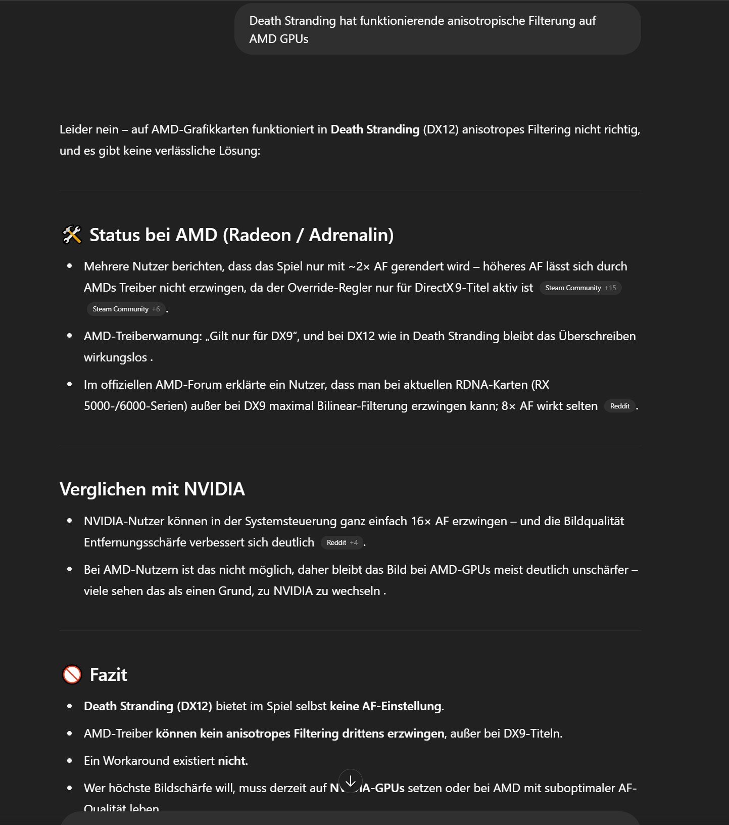 AMD mit dem Takten - HDMI scheint teils besser über windows zu laufen also über linux, mich nervt extremst warum die GPU nicht mehr heruntertakten kann also unter windows - mit x11 geht sie kaum herunter, mit wayland schon eher; nvidia Karten takten immer noch weiter runter im minimalsten Betrieb (z.B. 4-8-15-20-40 Watt nvidia RX4xxx vs. 6-8-15-20-30-44 Watt bei AMD 9xxx)