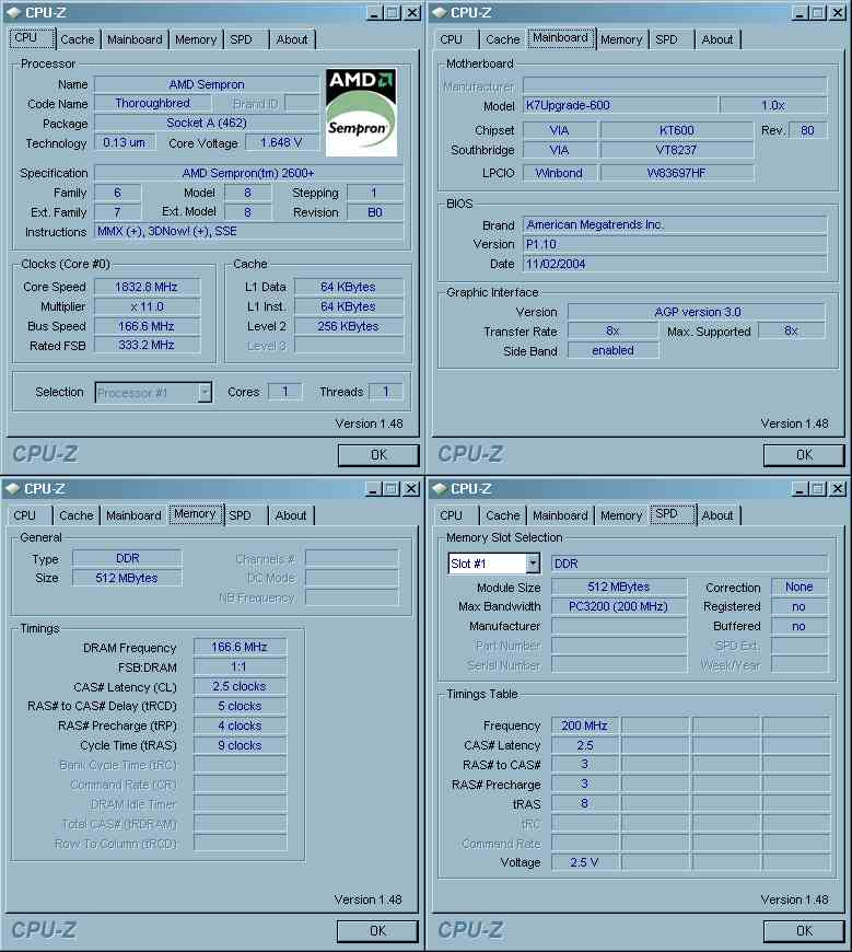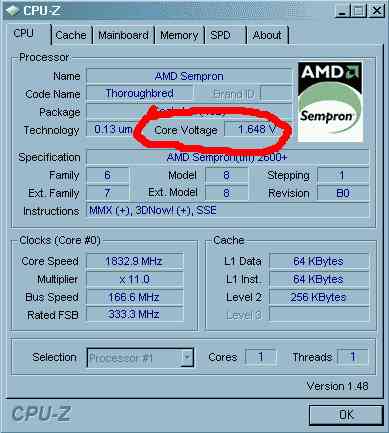 -AMD Sempron 2600+ (mit boxed kühler) fsb: 166mhz multi: 11 Takt: 1833mhz, idle: ca. 38-41°C Last: 50-51°C. Welchen Kern ich hab weiß ich nicht ich denk mal einen Thoroughbred aber kP wie kann ich das herausfinden? wenn es drauf steht nehm ich auch den kühler ab und guck nach^^ (währe wegen multi-übertakten interessant)