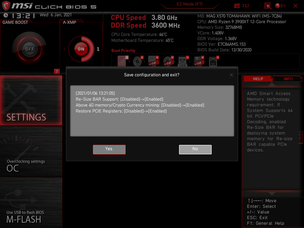 stbufraba schrieb:Ich suche mir gerade im entsprechenden Beta-BIOS 151 für MSI MAG X570 Tomahawk Wifi (7C84-001R) einen Wolf nach der von MSI so bezeichneten "AMD SAM(SMART ACCESS MEMORY) function".