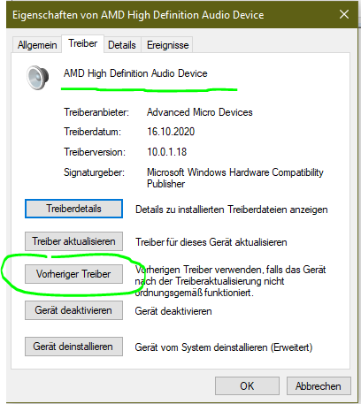 im Gerätemanager bei dem Gerät dann: "Vorheriger Treiber" auswählen.