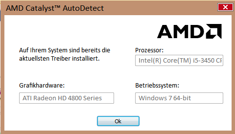 Neue Karte raus -> alte Karte rein (Radeon Vapor 4850 1GB) -> Treiber deinstalliert -> AMD Autodetect Software geöffnet