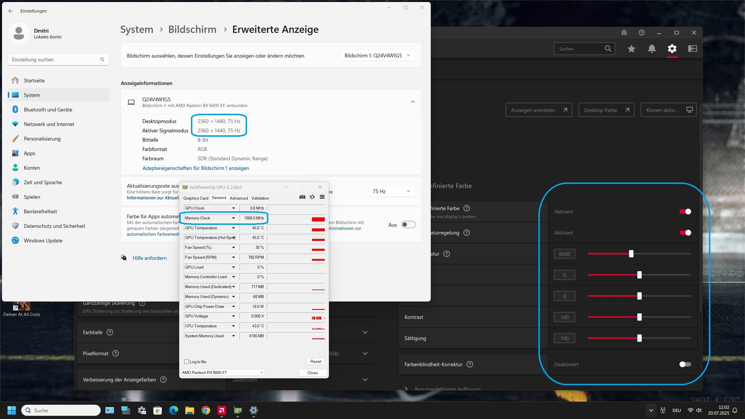 - Weitere Hardware, die offensichtlich mit dem Problem zu tun hat(Monitormodell, Kühlung usw.): 1x AOC 1440p 24 Zoll (DP) , 1x LG FHD 22 Zoll (HDMI)