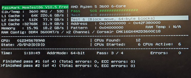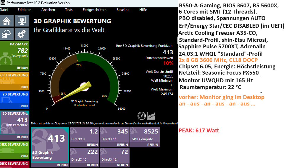 Es traten aber keine Fehler mehr auf, weswegen ich das NT erst mal drin ließ. Er lief auch längere Zeit mit der Vega-GPU (5700XT), irgendwann hatte ich die 5700XT dann aber wieder eingebaut. Als der PC im Februar mal nicht mehr startete, dachte ich, jetzt wäre das Rush Power endgültig am Ende, aber auch mit dem PX550 ging der Rechner nicht mehr. Es brauchte ein CMOS-Reset (wahrscheinlich irgendwas mit den Speicher-Einstellungen). Dann lief's weiter fehlerfrei.