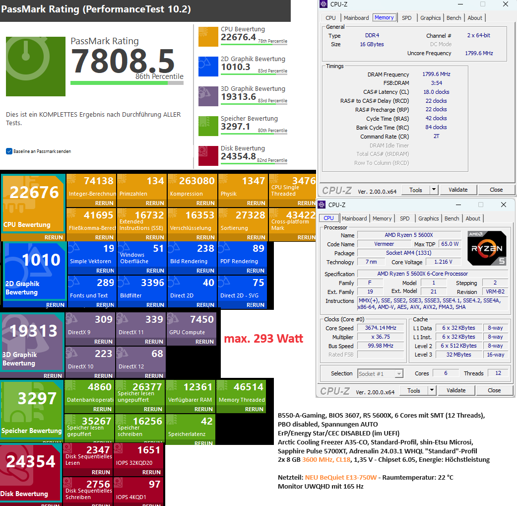 Vorgestern habe ich einen neuen Ryzen 5 5600X eingebaut, und schon einen Tag später gab's beim zocken 2x Treiber-Timeouts. Der Prozessor braucht auch mindestens 20 Watt mehr, schon im Leerlauf. Und bei gleichzeitiger, künstlicher GPU- und CPU-Auslastung zeigt das Messgerät Höchstwerte bei 350 ... 370 Watt an (die Lastspitzen mit > 500 Watt ausgenommen). Aber auch hier kein Video-Absturz mit Treiber-Timeouts.