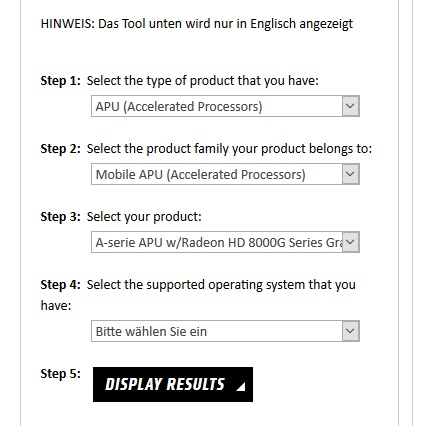 Bedeutet laut der AMD Support seite, das die Grafikeinheit HD8550G auf Legacy umgestellt wurde und nur noch bis Version 16.2.1 unterstützt wird. Leuchtet mir auch ein, denn in der Liste ist ja die APU HD 8000 D/G Variante drin.