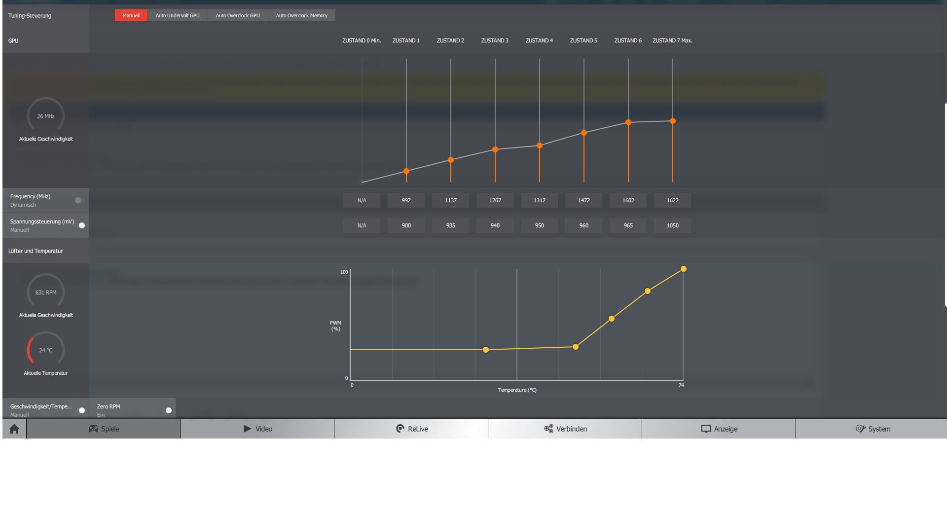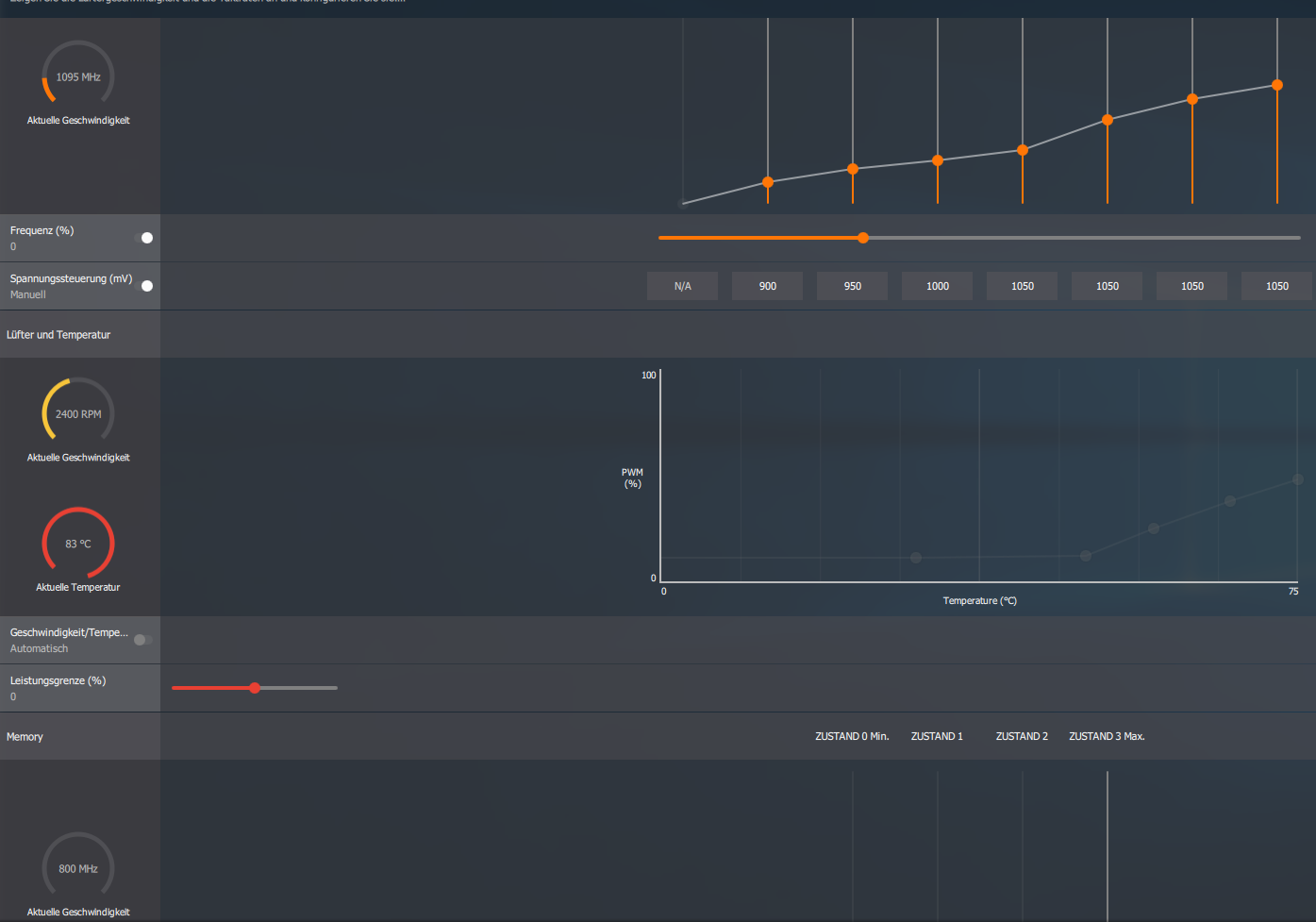Wenn du die Spannung von P4 (der erste slot wo du 1050mV eingetragen hast) veränderst, solltest du die "HBM Spannung" ebenfalls auf diesen Wert setzen, da das dem Standardverhalten der Karte entspricht.