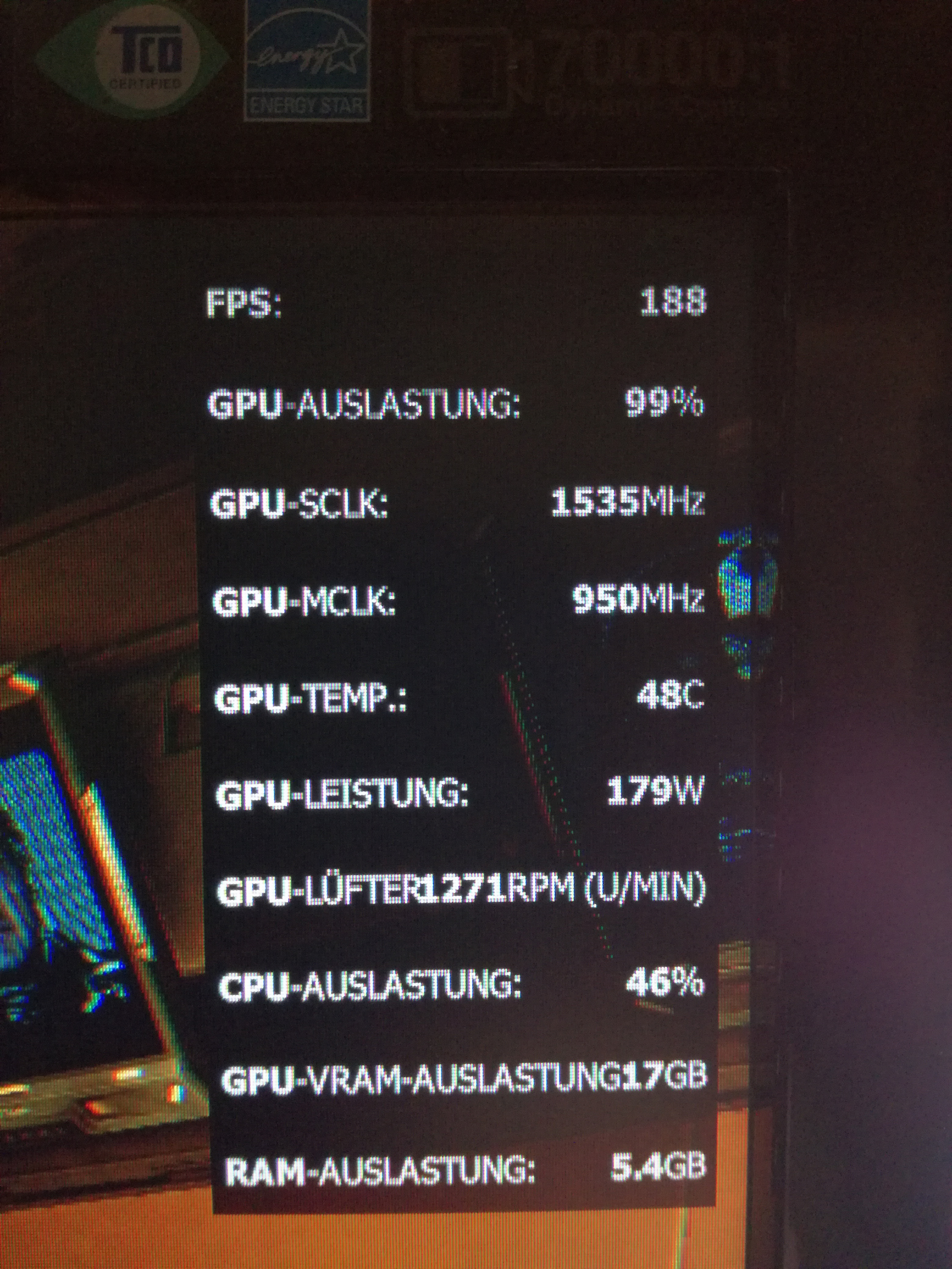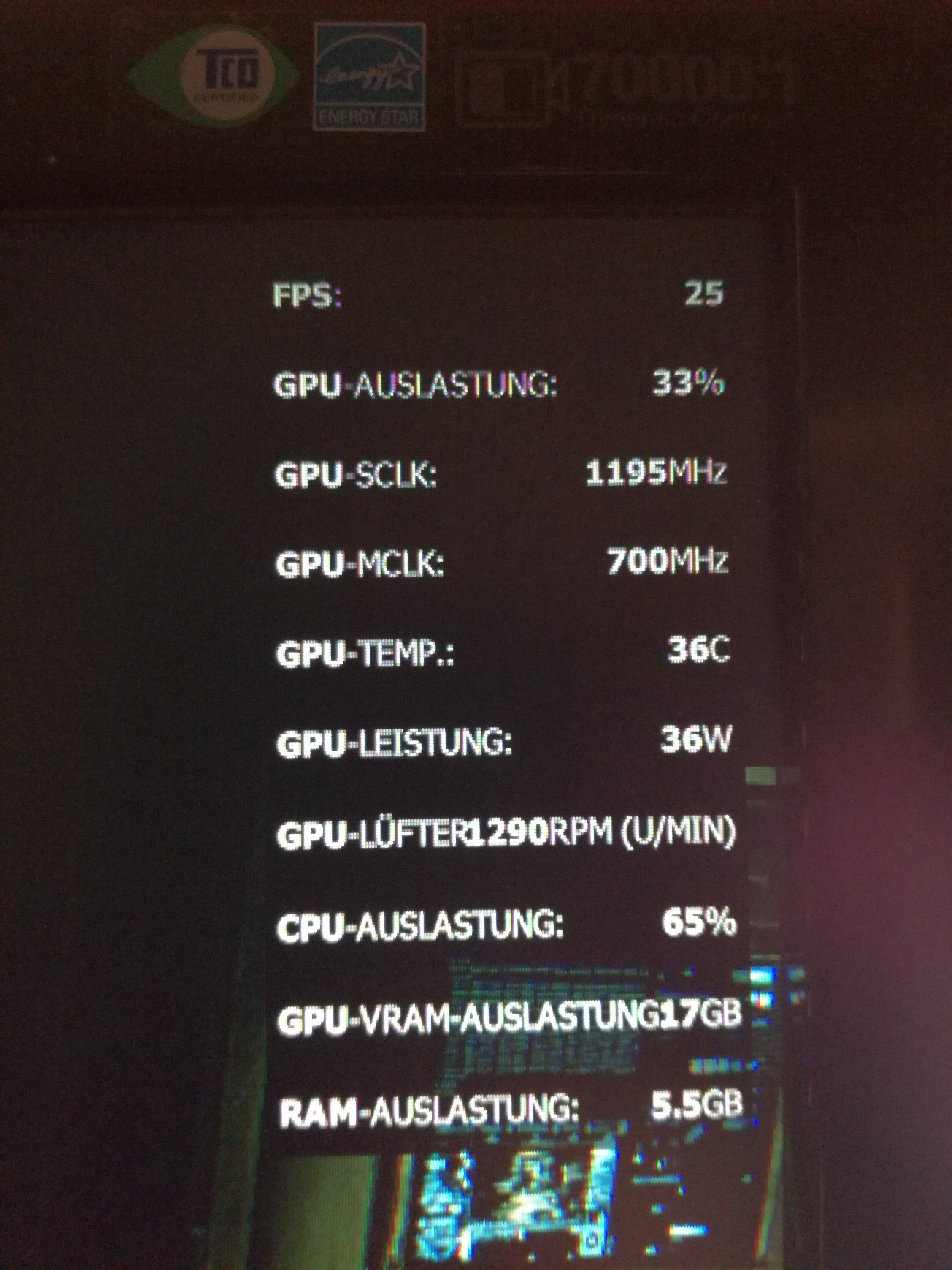 Bild 2: nur ein wenig in eine andere Richtung geschaut und Wattverbrauch sinkt, GPU Last und Mhz von Core und Speicher... schwenkt man wieder in die andere Richtung boostet sie wieder hoch.