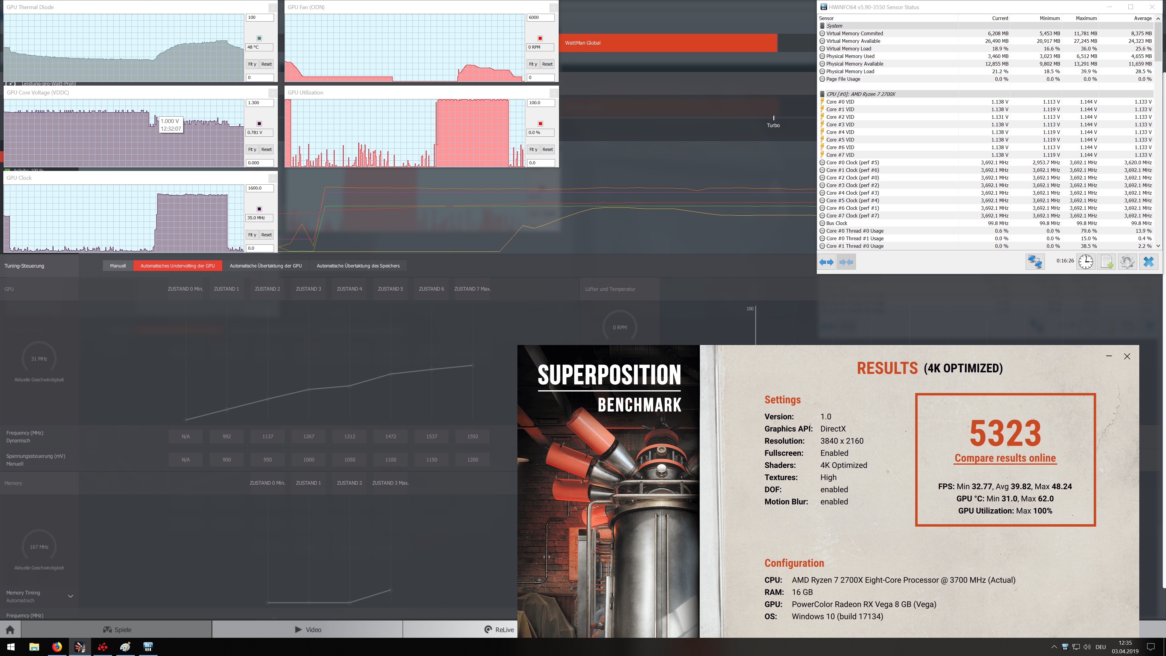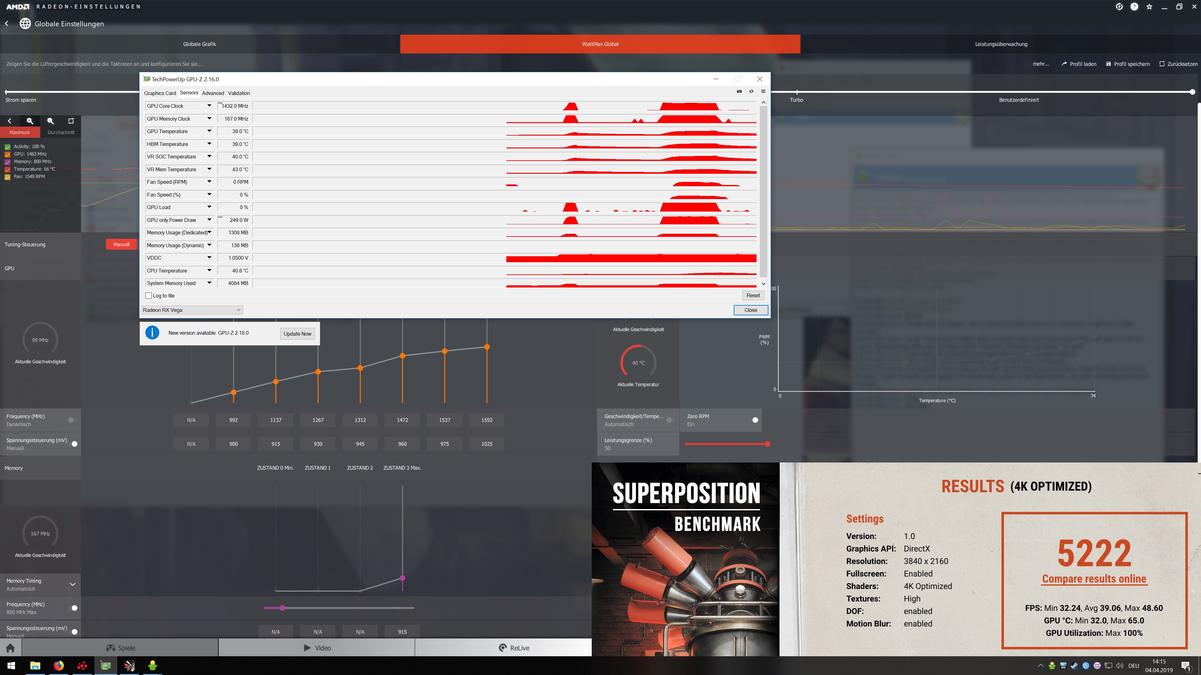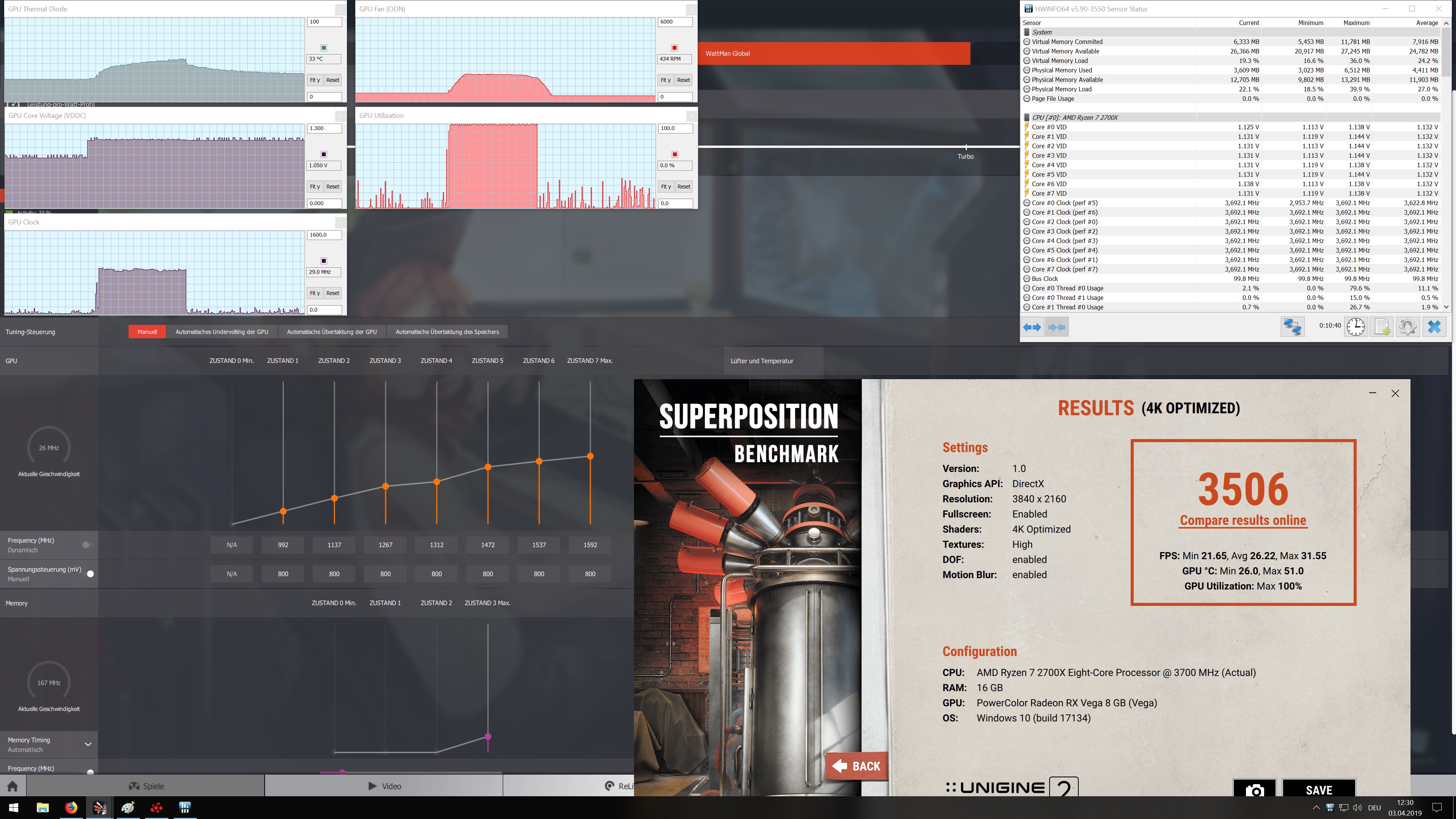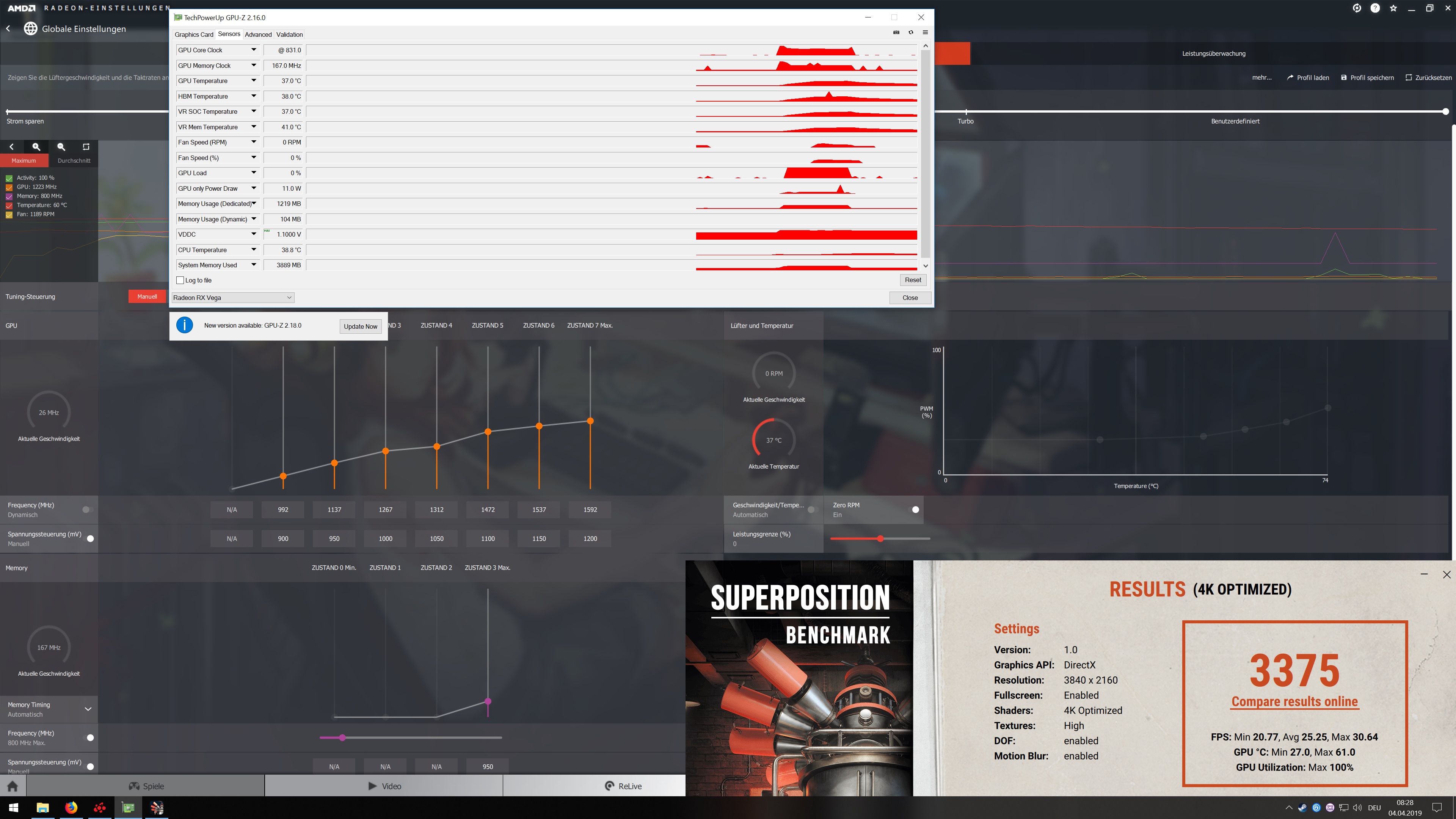 Nur der Vollständigkeit halber benutzt wird die Red Dragon RX Vega 56 von Power color. Betriebsystem ist Windows 10 auf dem neusten Stand vom 03.04. Der Treiber von AMD ist die 19.4.1