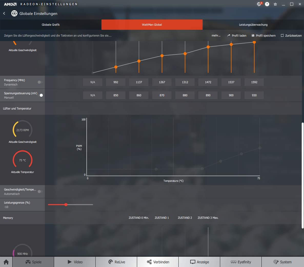 hierbei ist die HBM Temperatur wichtig, optimal >50°C. Solange ich unter 50°C bleibe bekomme ich sogar 1170mhz zum laufen (benchen)