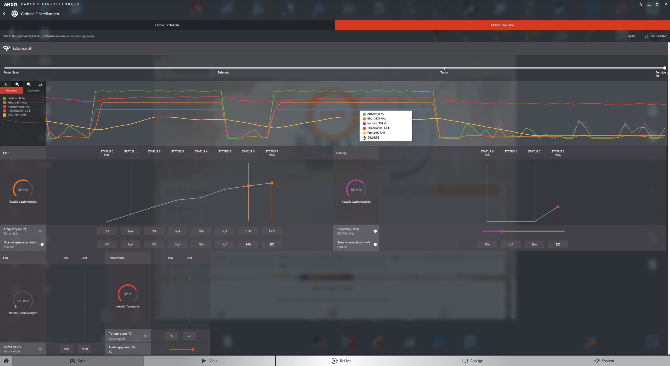 Habe deswegen noch den 17.8.1 Treiber. Wattman, Hwinfo (das ja die Spannung ausliest) und Gpu-z zeigen den Takt an.