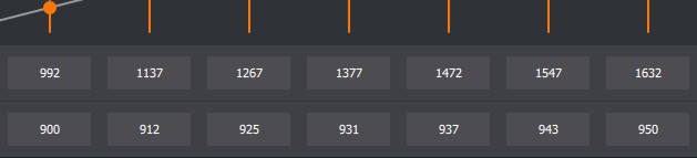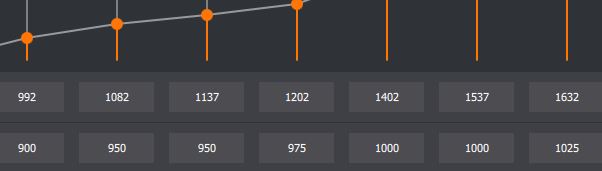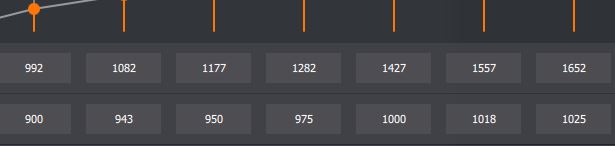 Btw ist der Verlust des Realtakts vom Zieltakt wie schon mal erwähnt ab P5 deutlich größer als bis P4. Wo man bei allen P-States bis P4 nur 30 - 50 MHz abziehen muss. Bei P7 sind es sicher 100 MHz und mehr die man quasi zu viel einstellen muss um den gewünschten Takt zu erreichen mit undervolting. Streckt man die Zieltaktrate nicht so, muss man die Spannung erhöhen um das selbe Ergebnis zu erzielen. Also entweder mehr MHz bei gleicher Spannung, oder mehr Spannung bei gleicher MHz können das selbe Ergebnis bringen. Jedenfalls was den Realtakt betrifft. Die Spannung ist aber mit dem daraus entstehenden Verbrauch das notwendige Übel, weswegen wir versuchen den gewünschten Takt bei möglichst geringer Spannung zu erzielen. 1652 MHz mit 925 MV resultieren bei mir in ~1500 MHz. Stabilere 1632 MHz mit 935 MV aber auch in ~1500 MHz. Der Verbrauch steigt dadurch schon um 10 Watt an.