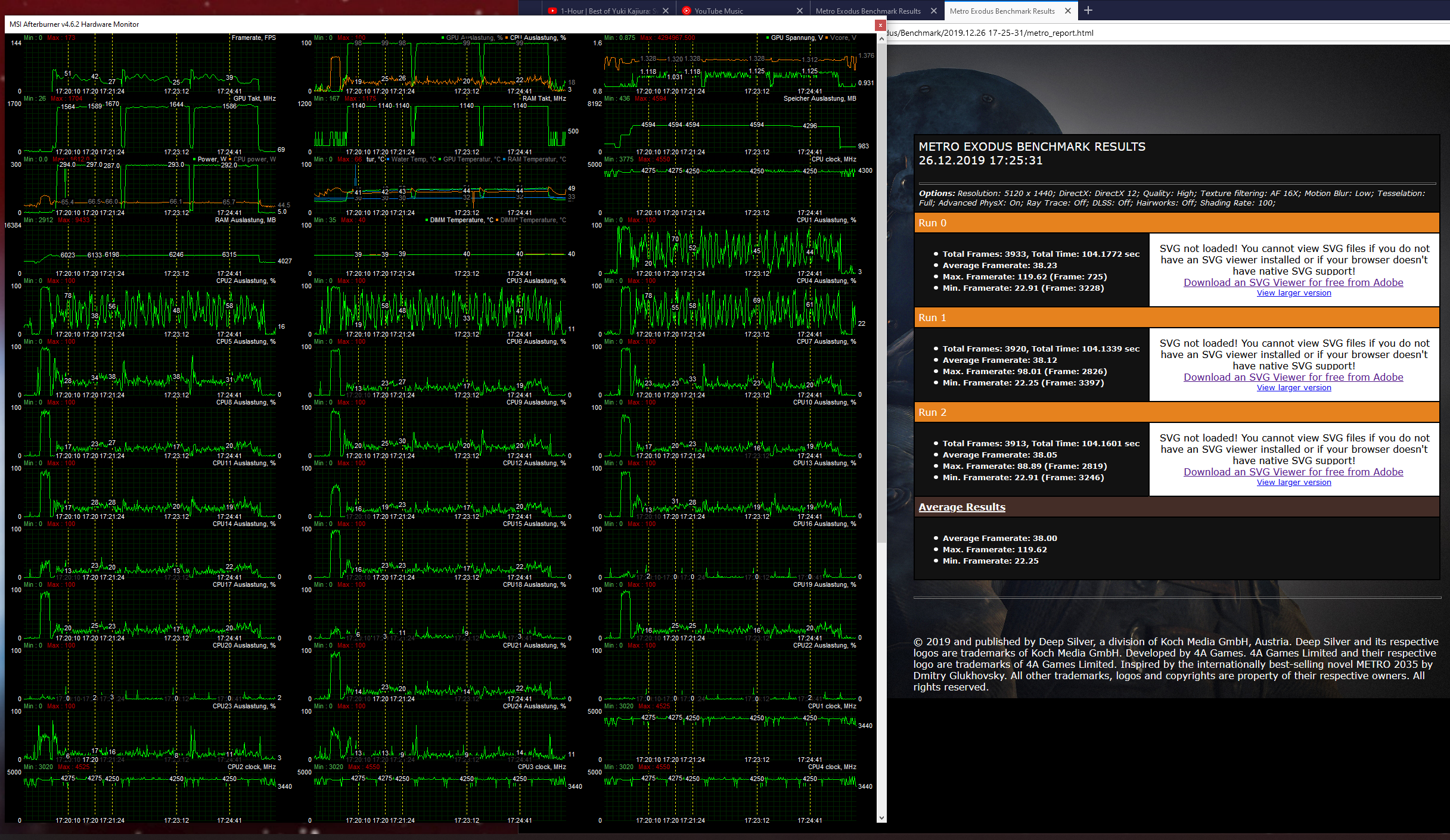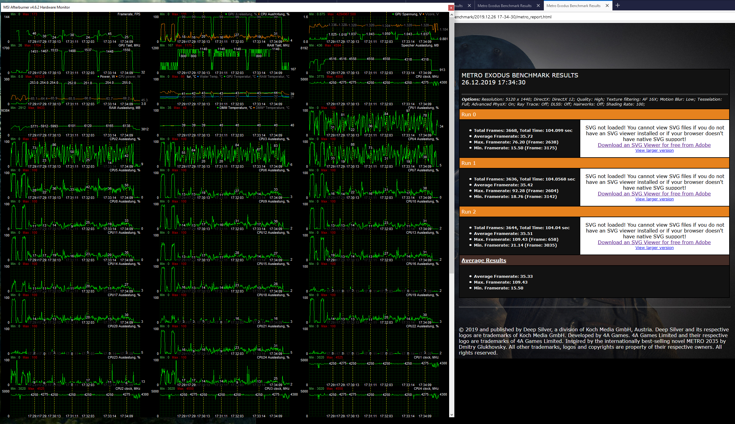 Im nächsten Schritt ging es dann an die Übertaktung des Speichers und diversen, weiteren Gegenvergleichen, um sich der Performance immer wieder rück zu versichern. Hier kam dann das zweitbeste Ergebnis raus, mit dem ich mich eigentlich abfinden wollte. Hab dann aber nach dem Lesen von Svens zweitem Versuch, kurzzeitig sein Profil ausprobiert, um mein Setting zu verfeinern, da mir vor allem die Minimum-Fps nicht zusagte: