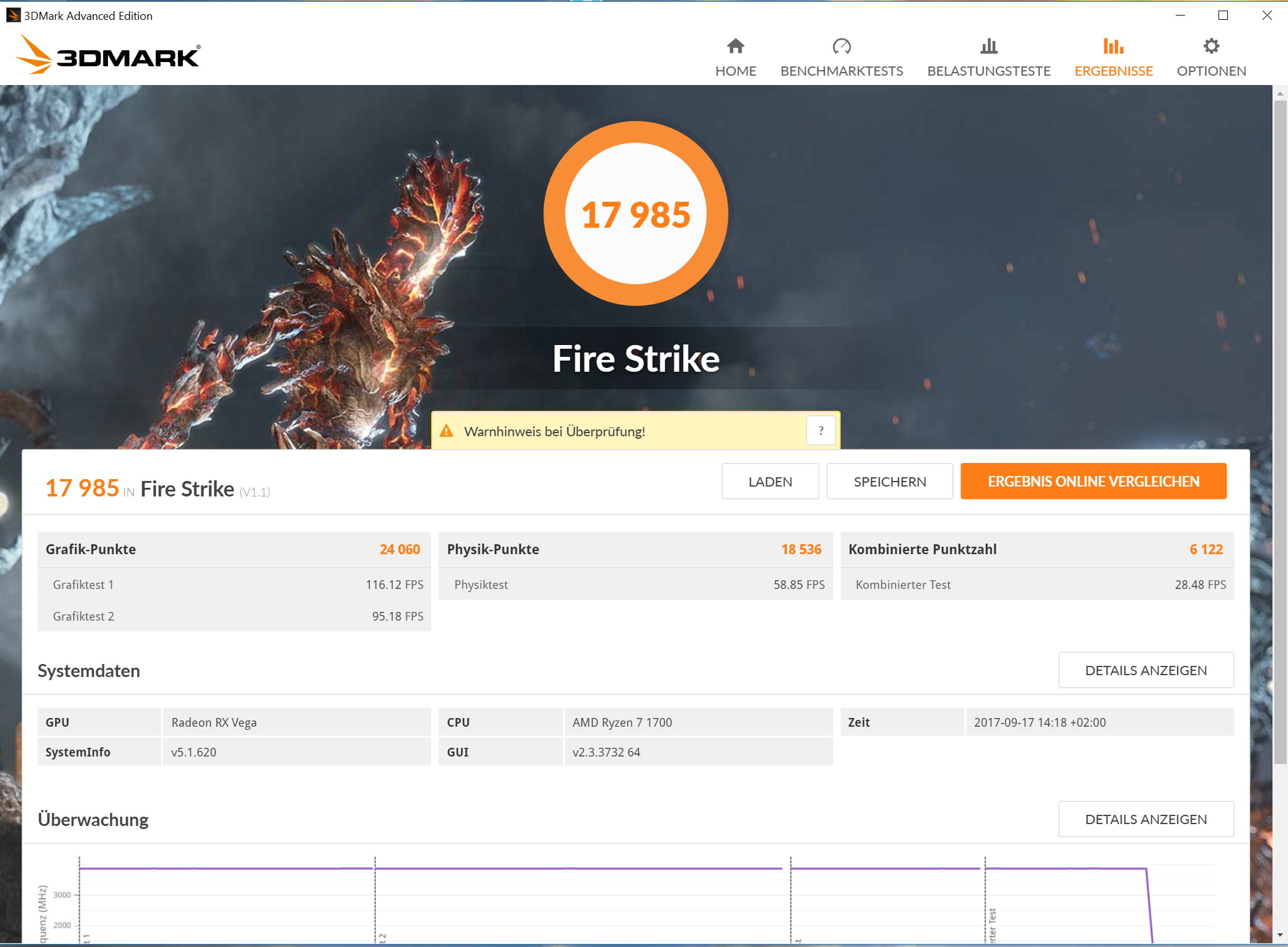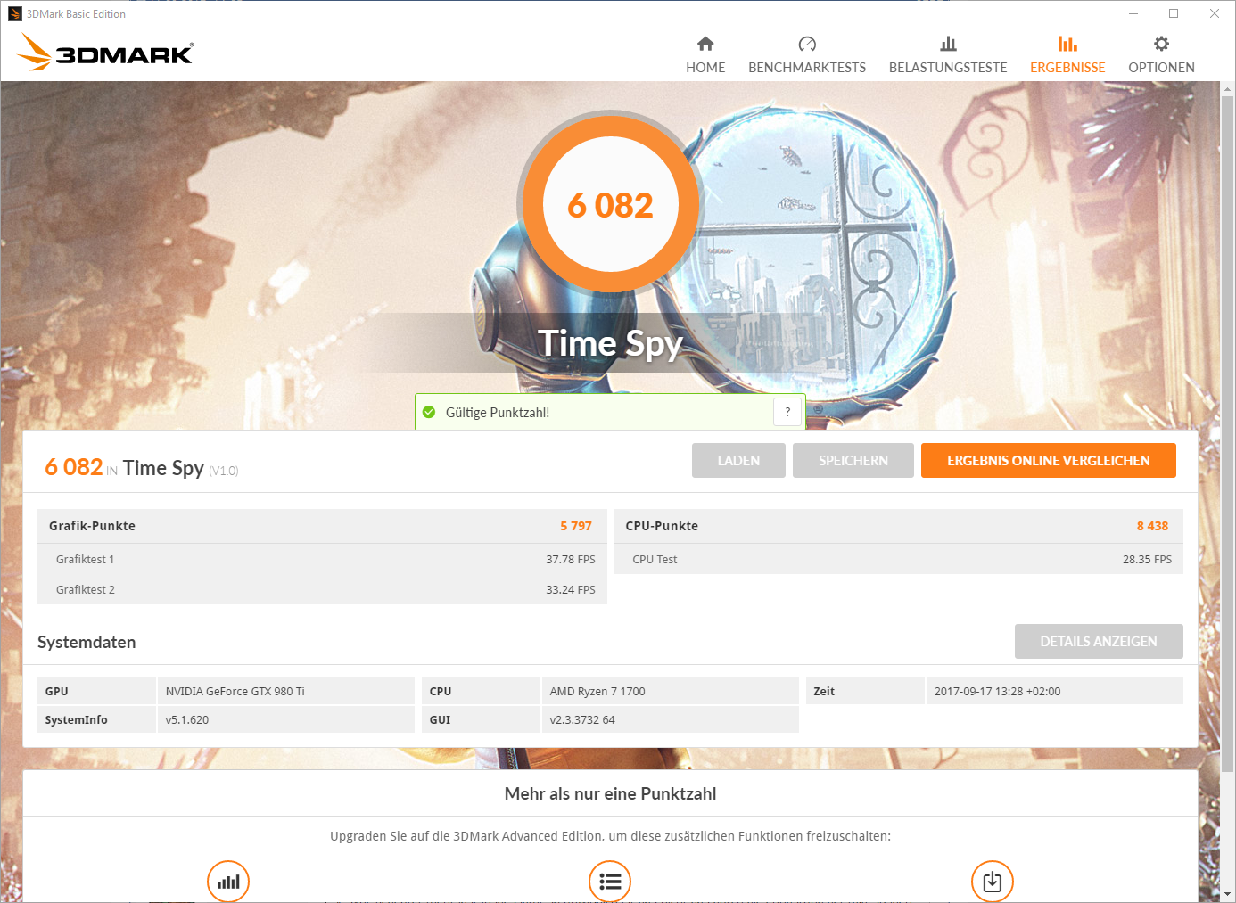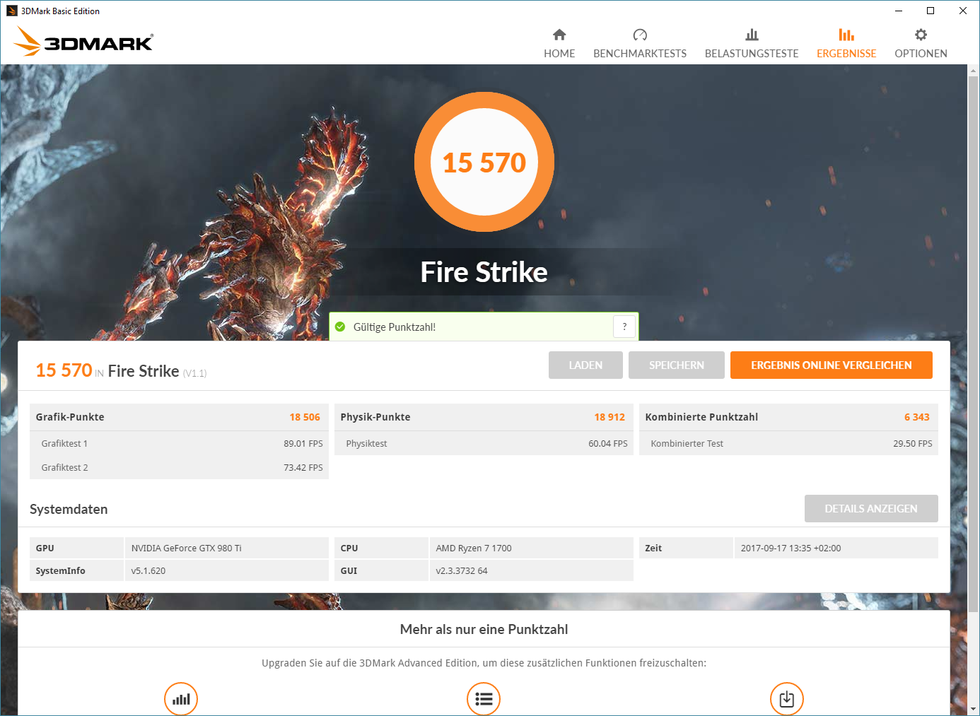 Da ich interesse daran habe bei Zeiten meine Gigabyte GTX 980 TI Extreme gegen eine Vega 56 zu tauschen auf Grund des FreeSync Monitors, habe ich auch mal den Benchmark laufen lassen.