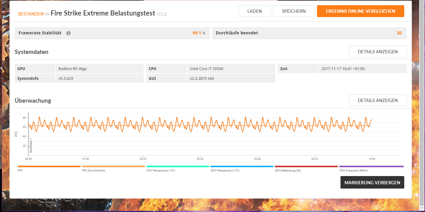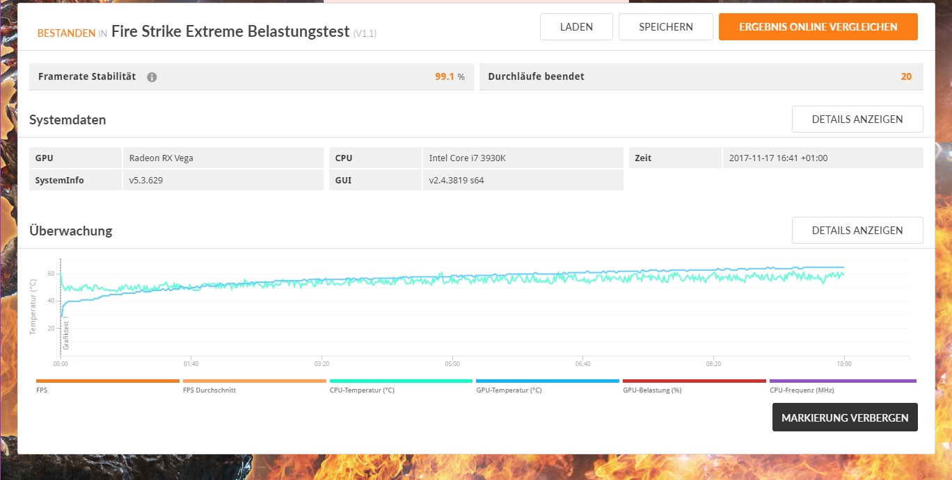 Max Temp nach 10 Loops waren 66 Grad, das Temptarget steht im Treiber auf 70 Grad.