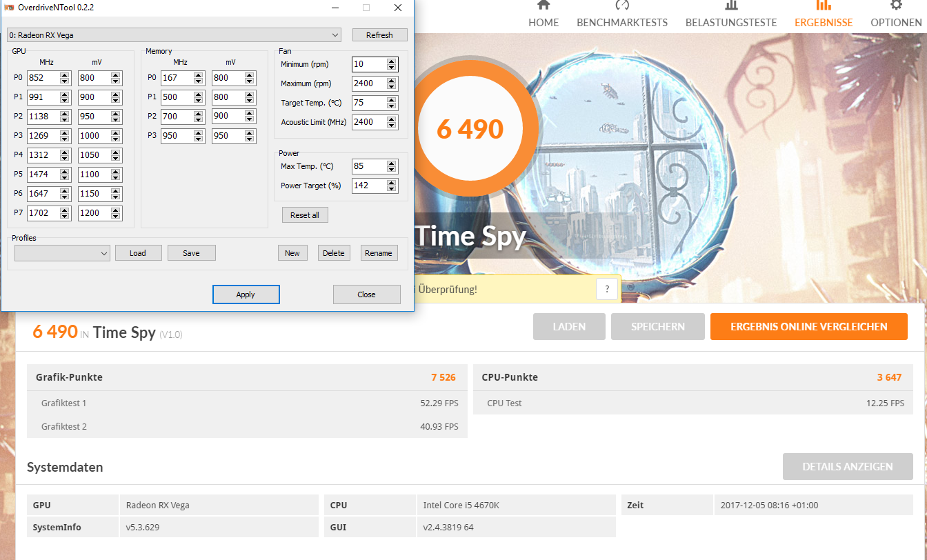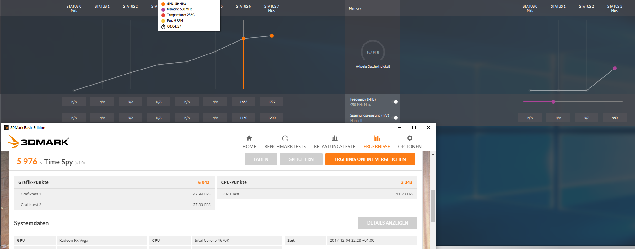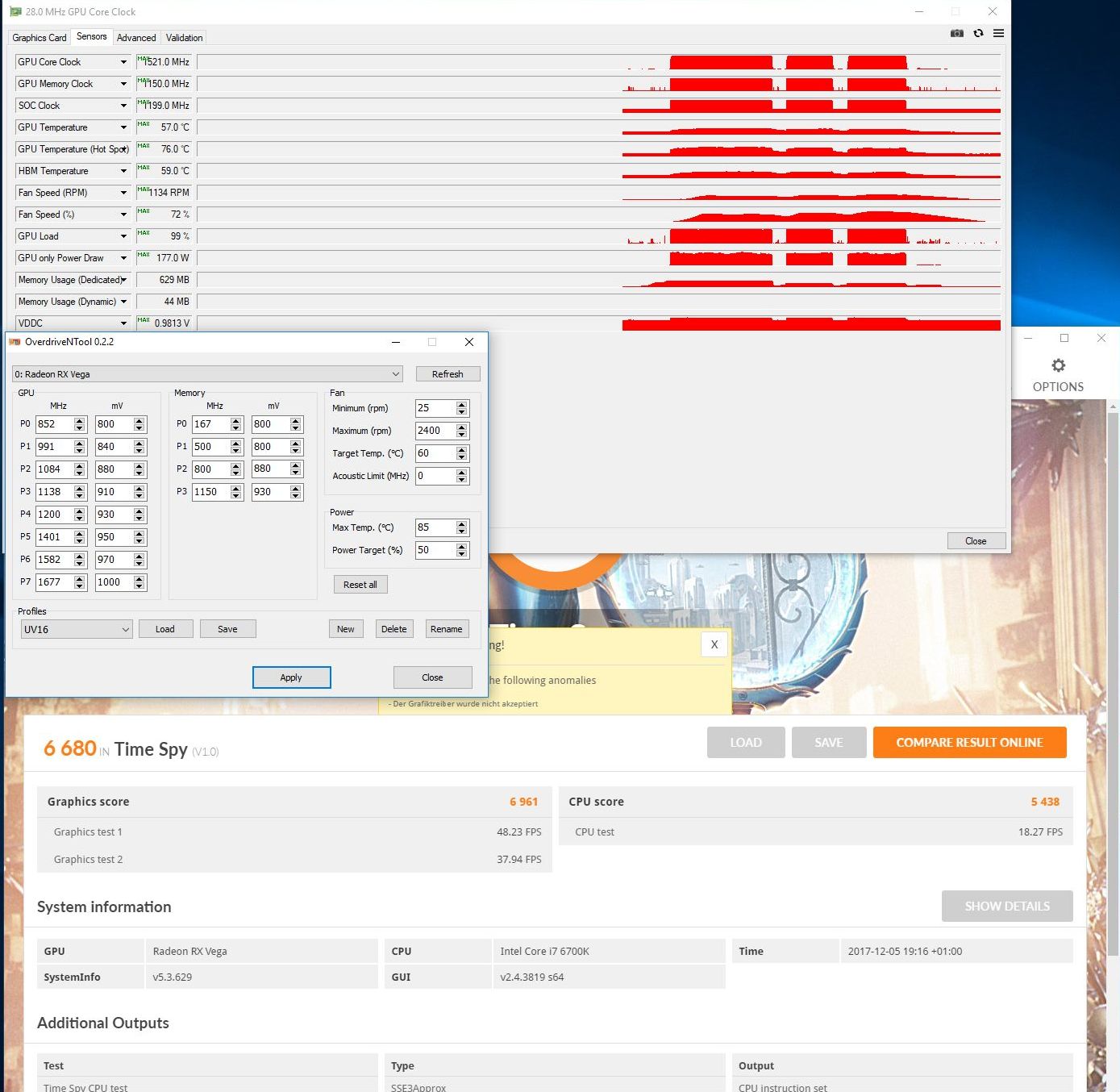 mein ziel unter TimeSpy einen stabilen takt um die 1.700 zu haben, hab ich auch geschafft um genau zu sein 1.702 MHz. dies wird aber nur kurzzeitig angefahren. ansonsten ist der Chip im 1680-1700mhz unterwegs.