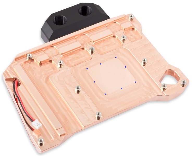 der Chip sah samt HBM eben aus, was ich aber festgestellt habe das mein Kühlerboden (Aquacomputer kryographics) uneben ausah, oder dieser wurde nicht genau poliert. (dieser hatte an den blau makierten stellen eine unterschiedliche kante zentel mm bereich, am HBM niedrieger da ich keine lust auf umtauschen der gleichen hatte habe ich es mit mehr WLP ausgeglichen) gewundert hat es mich aber schon.