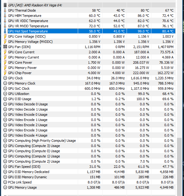 Vor dem WLP-Tausch erreichte der Hotspot bei mir auch gut und gerne 20 Grad mehr als die GPU und der HBM. Im konkreten Fall in GTA V 99-100 Grad, während die GPU bei ca. 80 Grad und der HBM bei 87 Grad arbeiteten. Die Werte sind mit dem Standard-Bios gemessen, um eine bessere Vergleichbarkeit zu gewährleisten.
