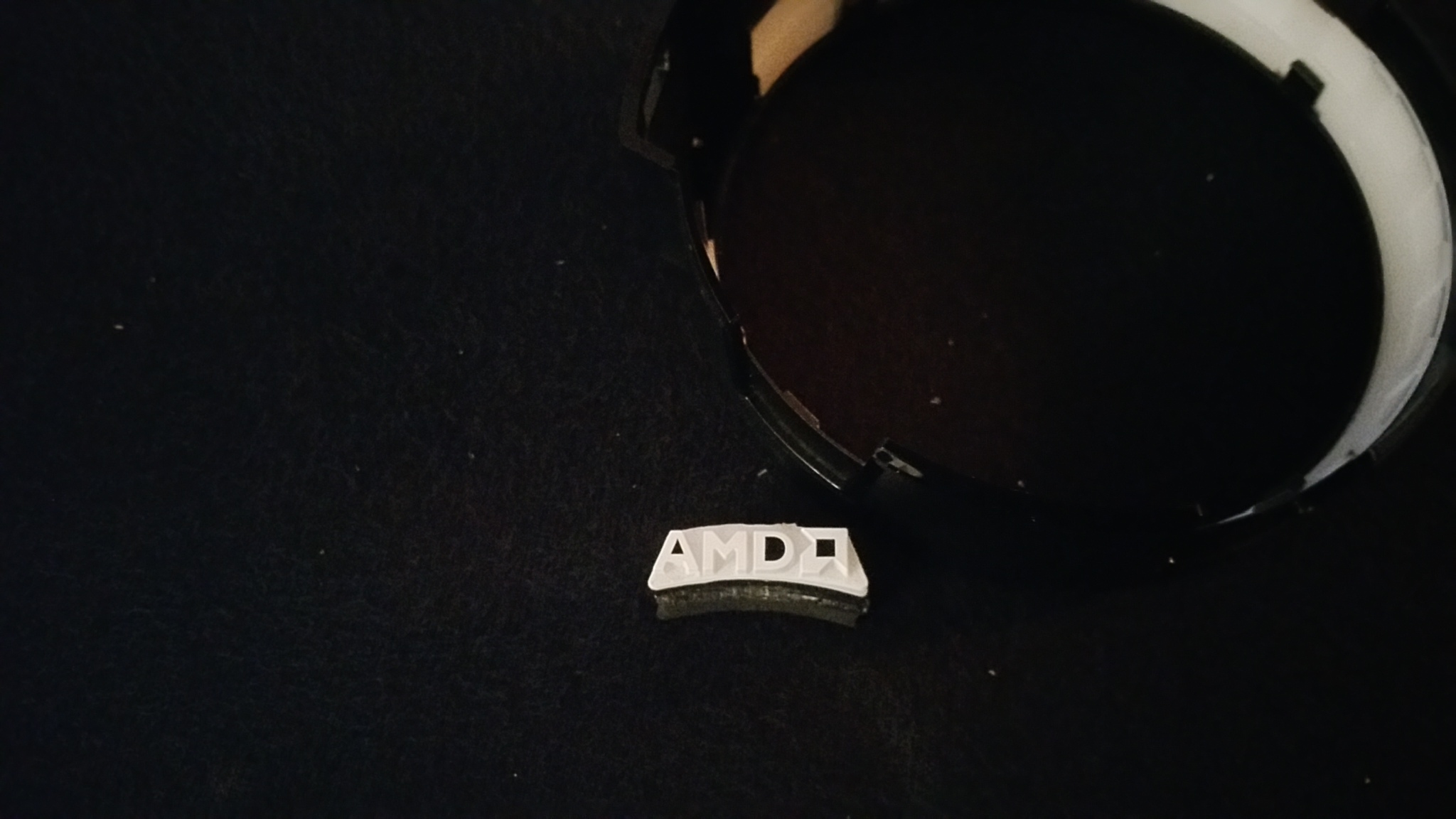 Wenn man den Lichtring des Häckslerdesignlüfters auseinander nimmt, erkennt man ein klassisches RGB-Band dass um den Coolermaster Lüfter angebracht ist, und ein weiss beleuchtetes AMD Logo (dass ich erst anlöten muss, und eine etwas hellere LED mit sauberem kaltweissen Licht erzeugt verglichen zur AVG Siebenblattlüftervariante.)