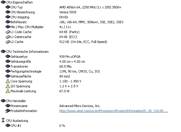 Also ich mache ich mir sorgen. Mein AMD 64 3500+ wird dann wirklich zu heiß der hat im normalem betrieb 76°C aber das ändert sich auch nicht beim Vollbetrieb. Mein Kühler ist eigentlich ausgelegt für 2,2 GB. Kann es daran liegen das mein Rechner unter dem Tisch steht und am Gehäuse alle flügeln (rechts und links) offen sind. Ich habe auch 3 FAN kühler bei denen zwei rein blasen und einer bläst es raus.